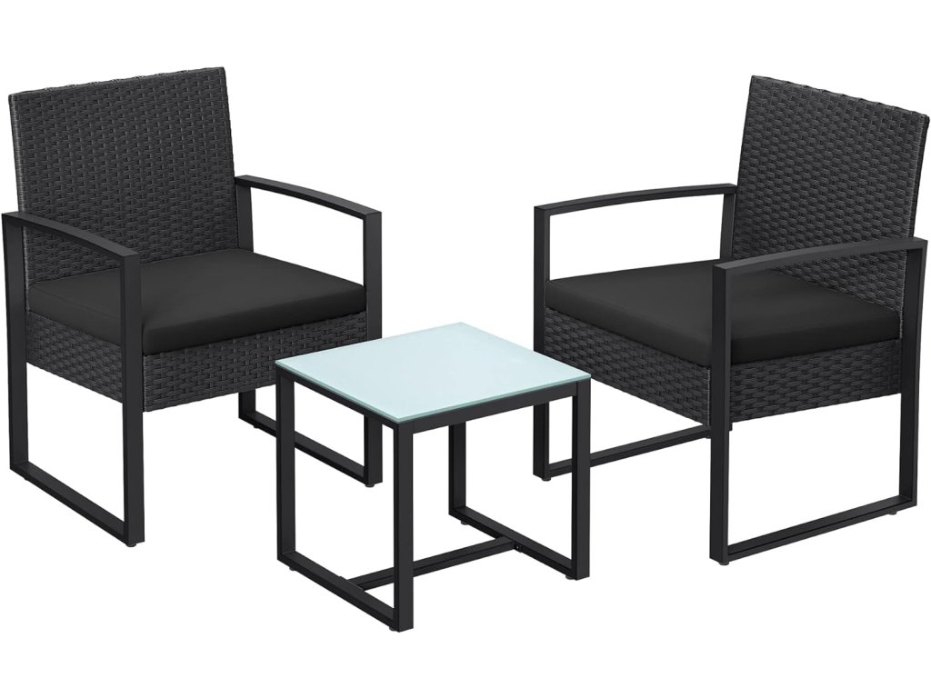 Balkónový nábytok 2+1 kovový ratanový čierny