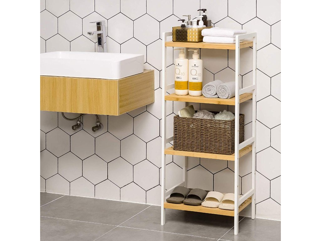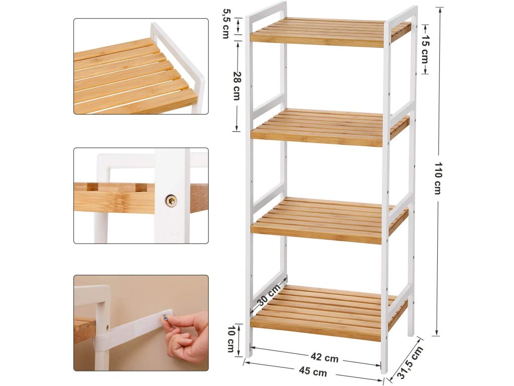 Bambusový regál so štyrmi policami rozšíri v miestnostiach úložný priestor. Využiť ho môžete ako knižnicu, kúpeľňový regál, policu na kvetiny, a ďalšie.