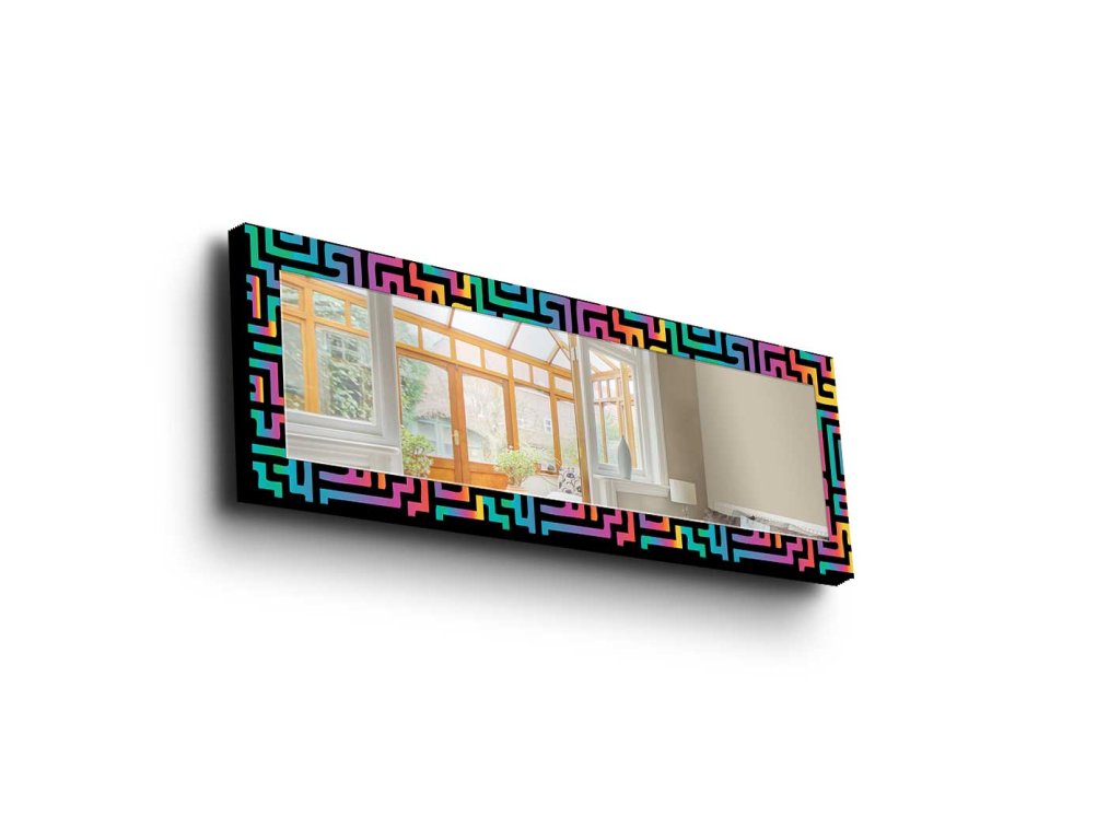 Zrkadlo je vyrobené z borovicového rámu a zrkadla a je skutočným umeleckým dielom. Rám s hrúbkou 27 mm s motivem kybernetických neónových kriviek dodá každému priestoru moderný nádych.