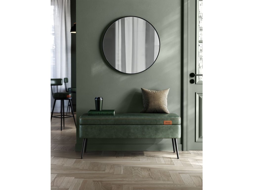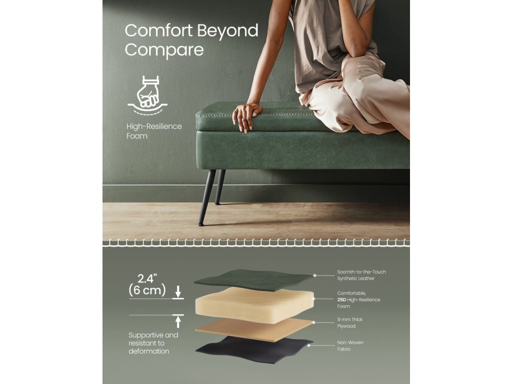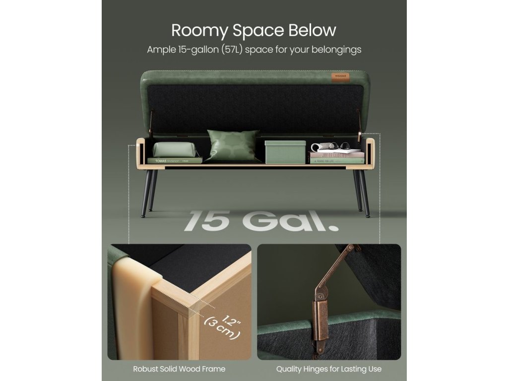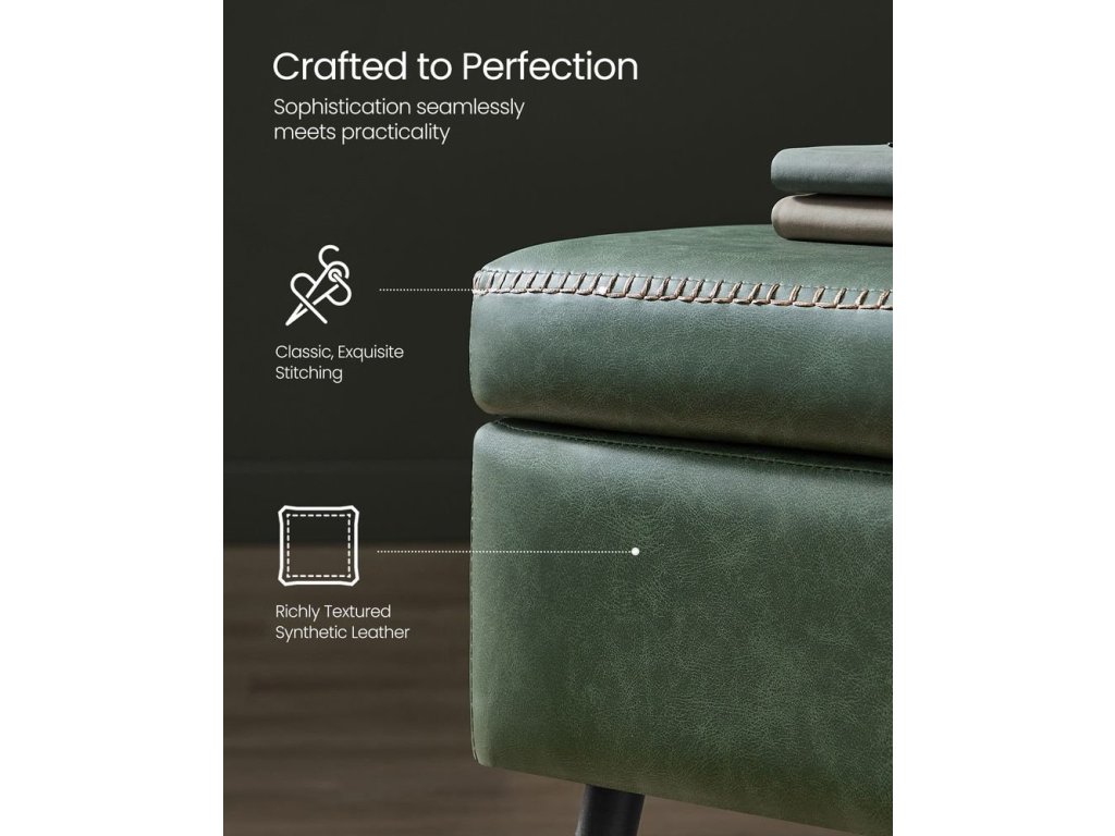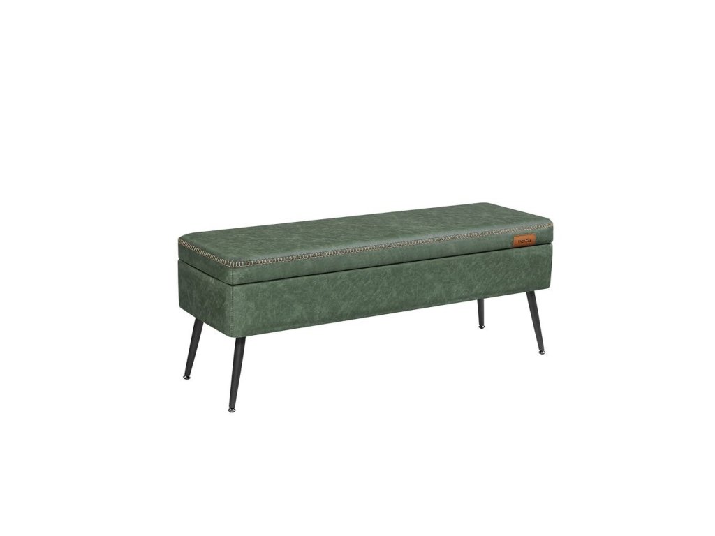 Zelený čalúnený otoman VASAGLE EKHO s úložným priestorom.