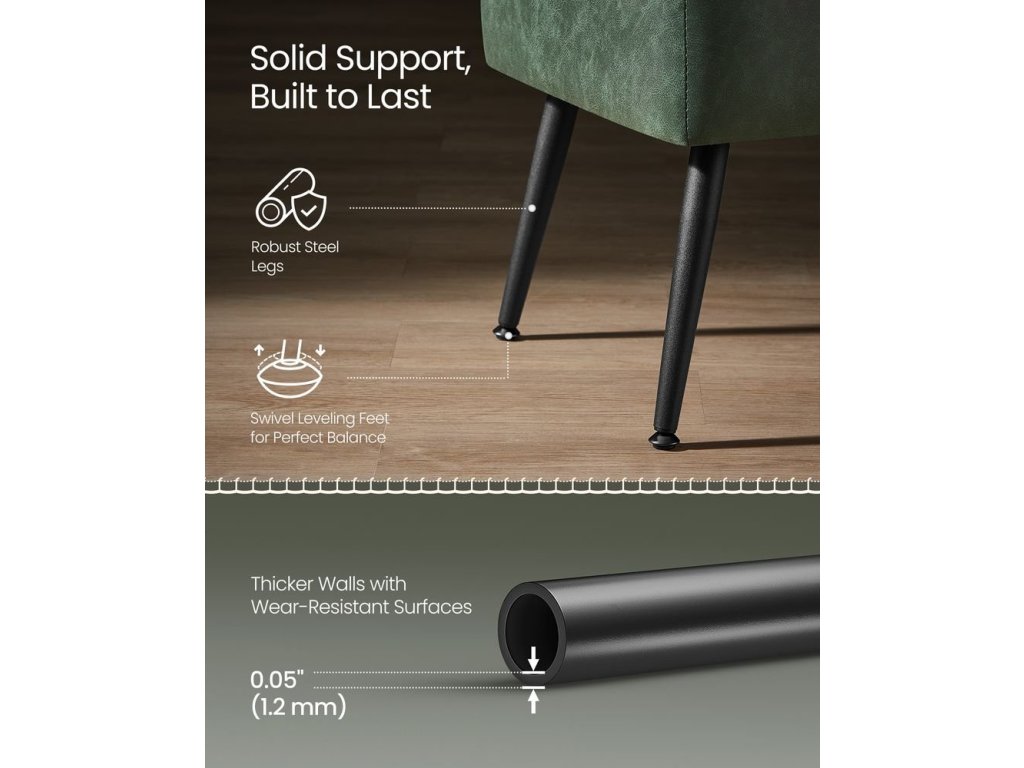 Vďaka rámu z masívneho dreva a robustným oceľovým nohám unesie otoman pôsobivú hmotnosť až 300 kg (220 libier). Dôverujte jej pevnosti a odolnosti a stane sa spoľahlivou súčasťou vašej domácnosti.