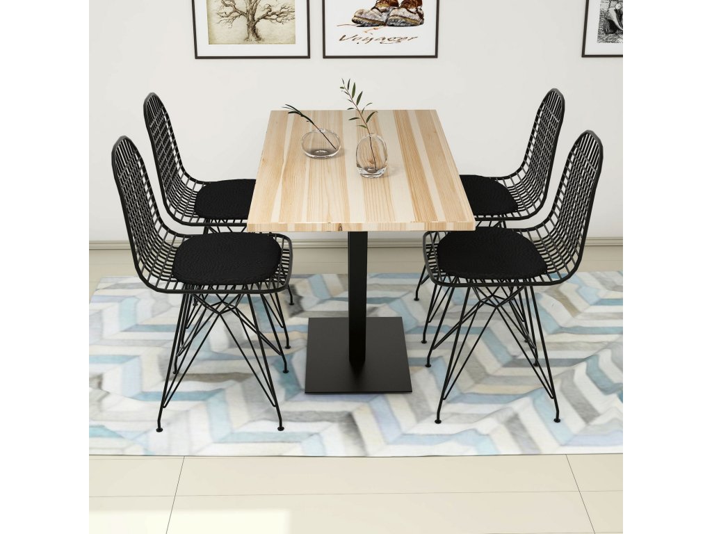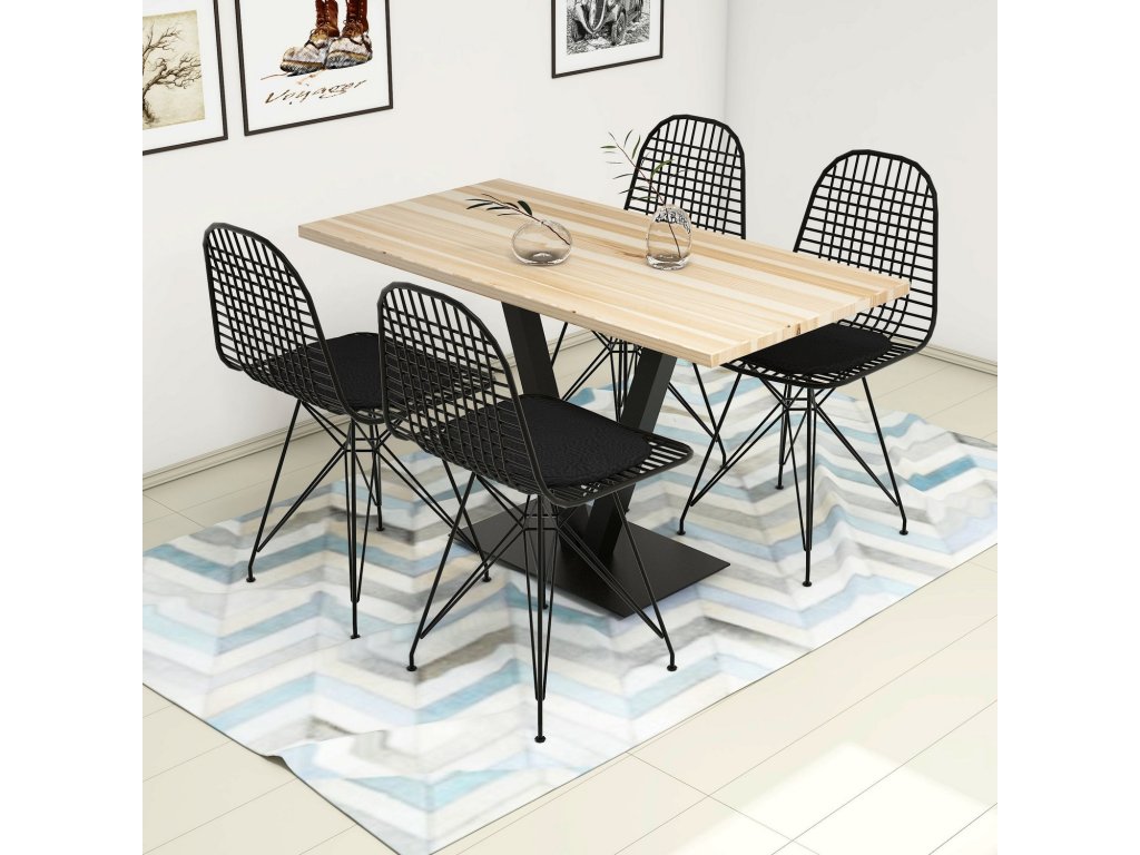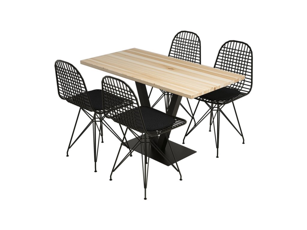 Každá stolička má nosnosť až 120 kg. Stôl má kovové nohy v tvare písmena V a vrchnú dosku z brezového dreva.
