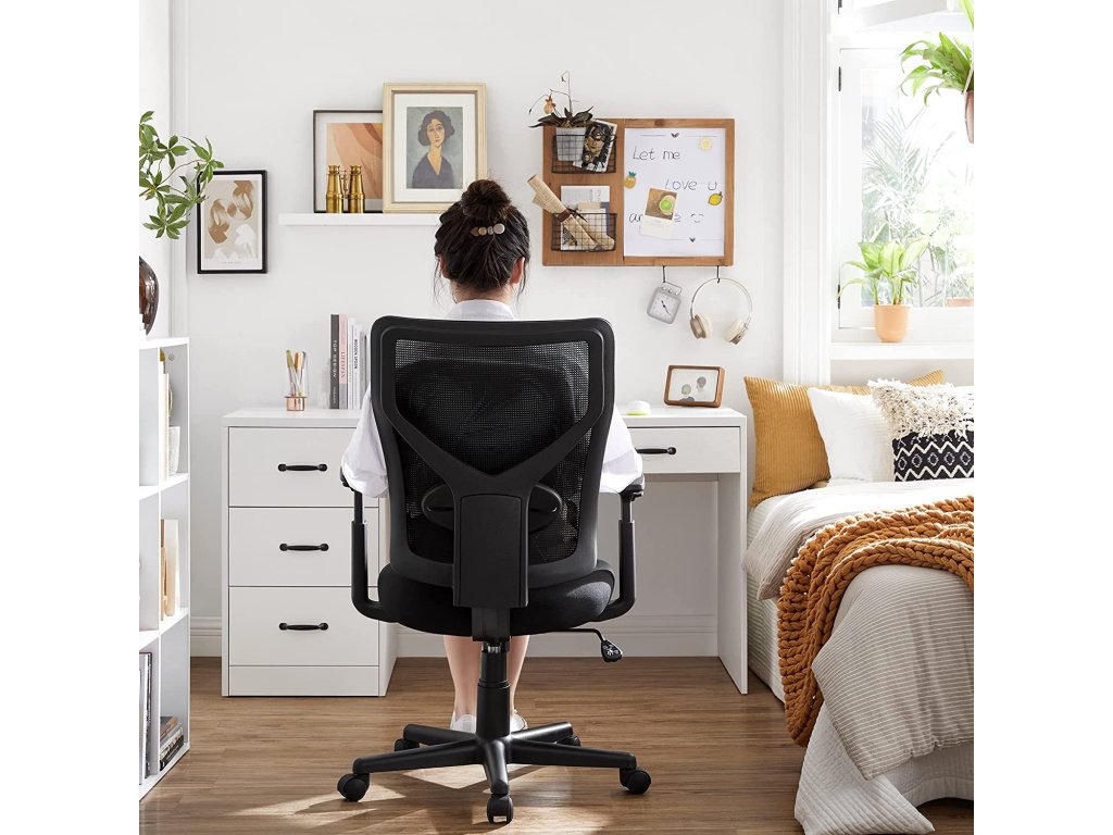 Posaďte sa do tohto ergonomického, vysoko elastického, čalúneného kancelárskeho kresla a užite si pohodlie pohovky pri práci.