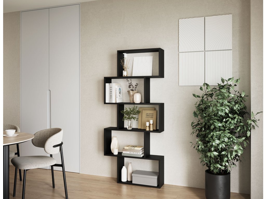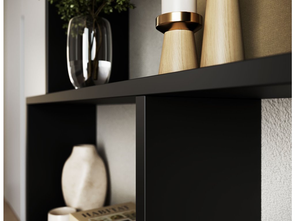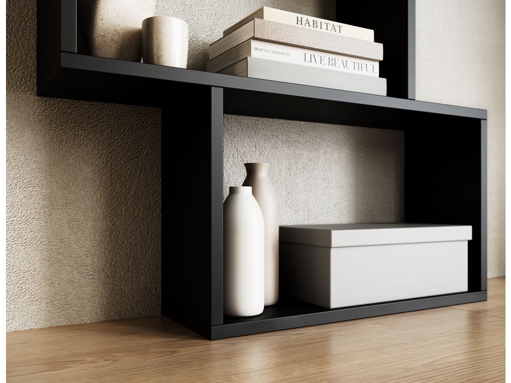 Knihovna Shellf v černé barvě je skvělou volbou pro ty, kteří oceňují moderní a výrazná řešení. Její originální tvar založený na překrývajících se obdélnících podtrhuje minimalistický styl, zatímco černý povrch dodá eleganci každému interiéru. Z tohoto důvodu se nábytek hodí jak do moderních, tak do industriálnějších uspořádání, kde se stane klíčem k vykouzlení úhledného a vizuálně přitažlivého prostoru.
