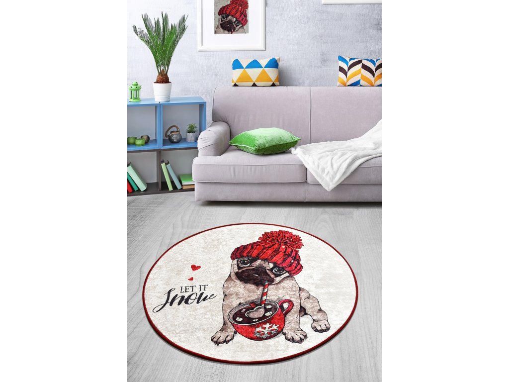 Okrúhly koberec s motívom a nápisom LET IT SNOW.