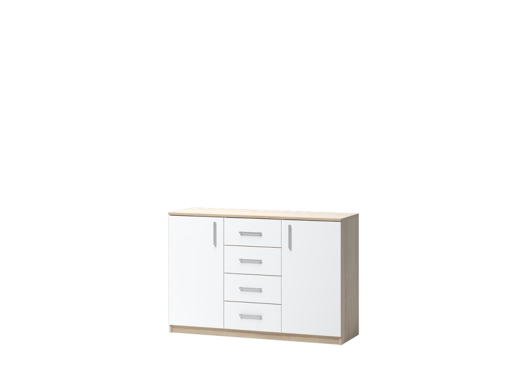 Komoda TATRIS so štyrmi zásuvkami a dvoma skrinkami v kombinácii dub sonoma a biela