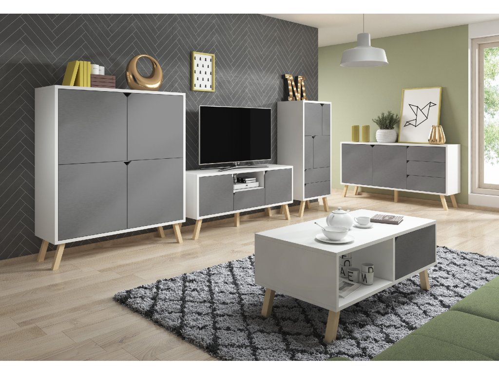 Zaujímavým prvkom sú nohy nábytku, ktoré sú vyrobené z dreva. Sprístupňujú priestor pod komodou, napríklad pre robotické vysávače.