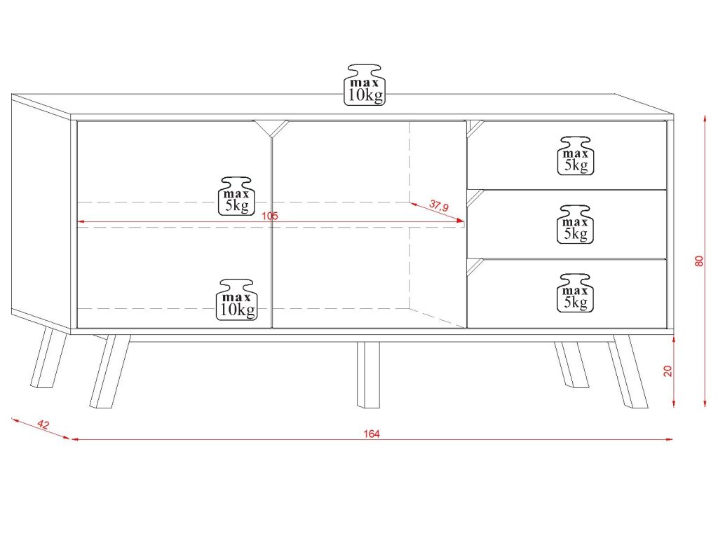 - rozmery ŠxVxH: 160x80x42 cm