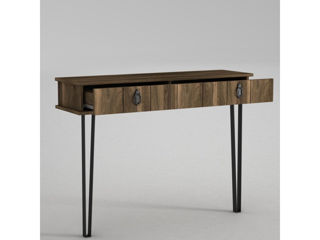 Konzolový stolík LOST je dizajnovo nápadný s vhodne doplneným kovaním na zásuvke a kovové nohy ešte umocňujú jeho atraktívny vzhľad.