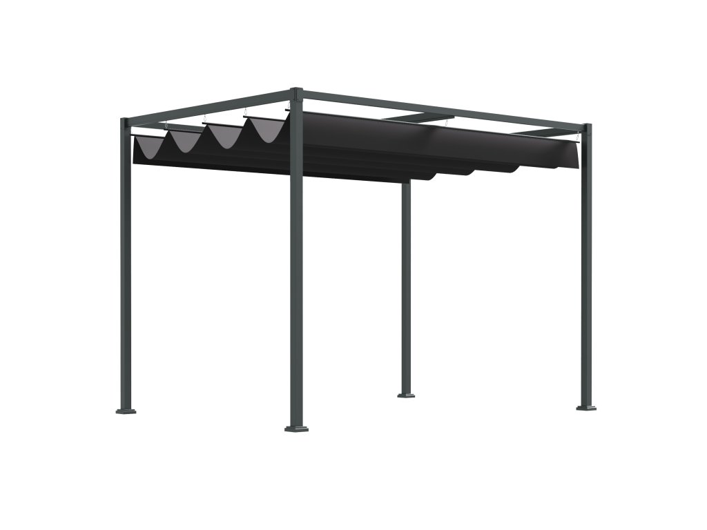 Kovová pergola s textilnou strechou 298 x 221 x 213 cm čierna