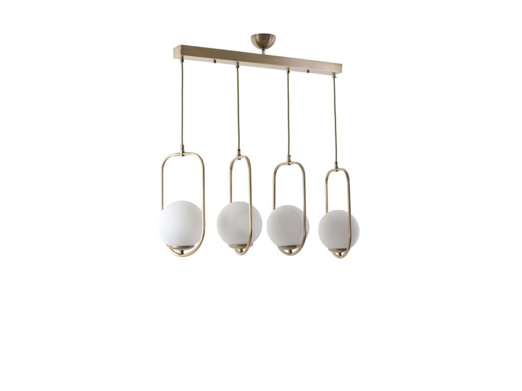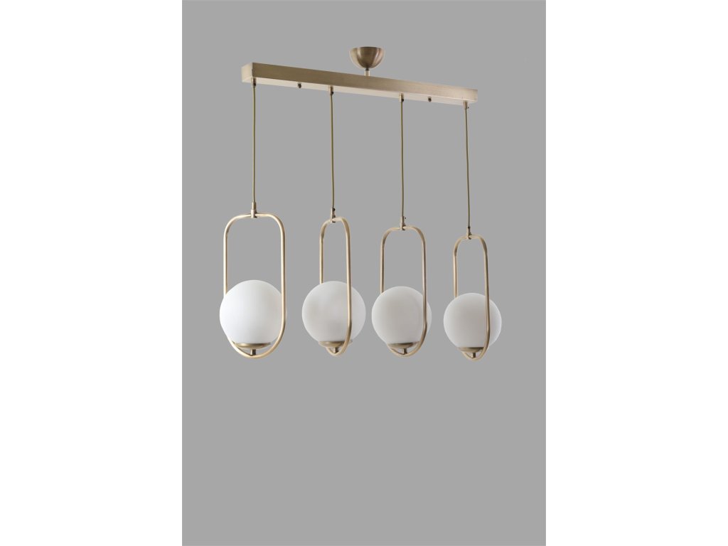 Elegantný luster so štyrmi závesnými tienidlami v bielej farbe.