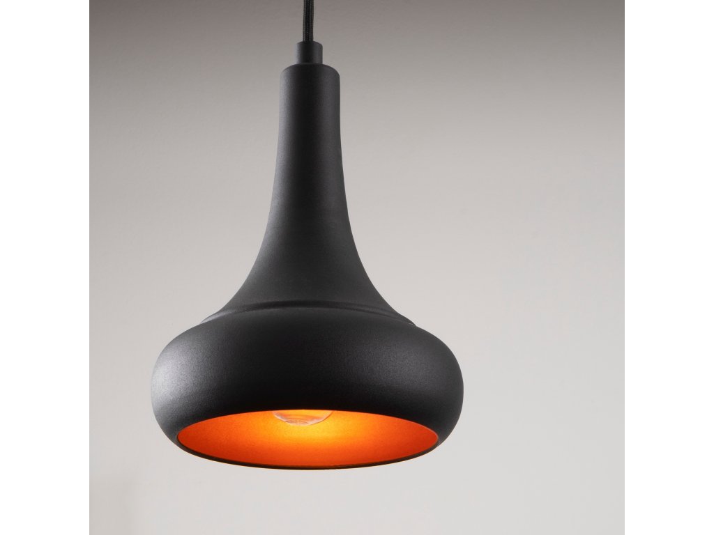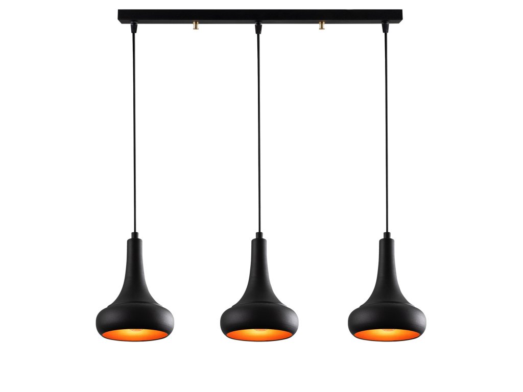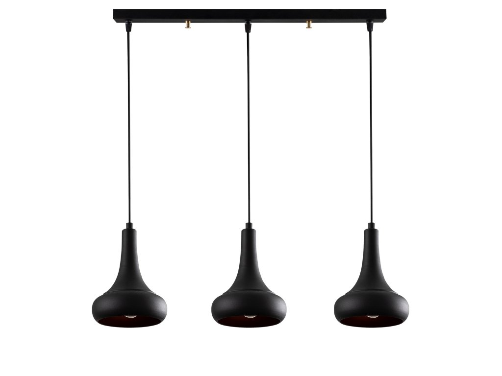 Luster BERCESTE Vás okamžite upúta tromi zavesenými menšími tienidlami, ktorých jemný čierny dizajn pôsobí elegantne.