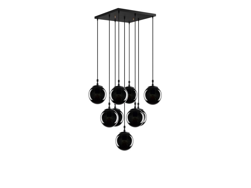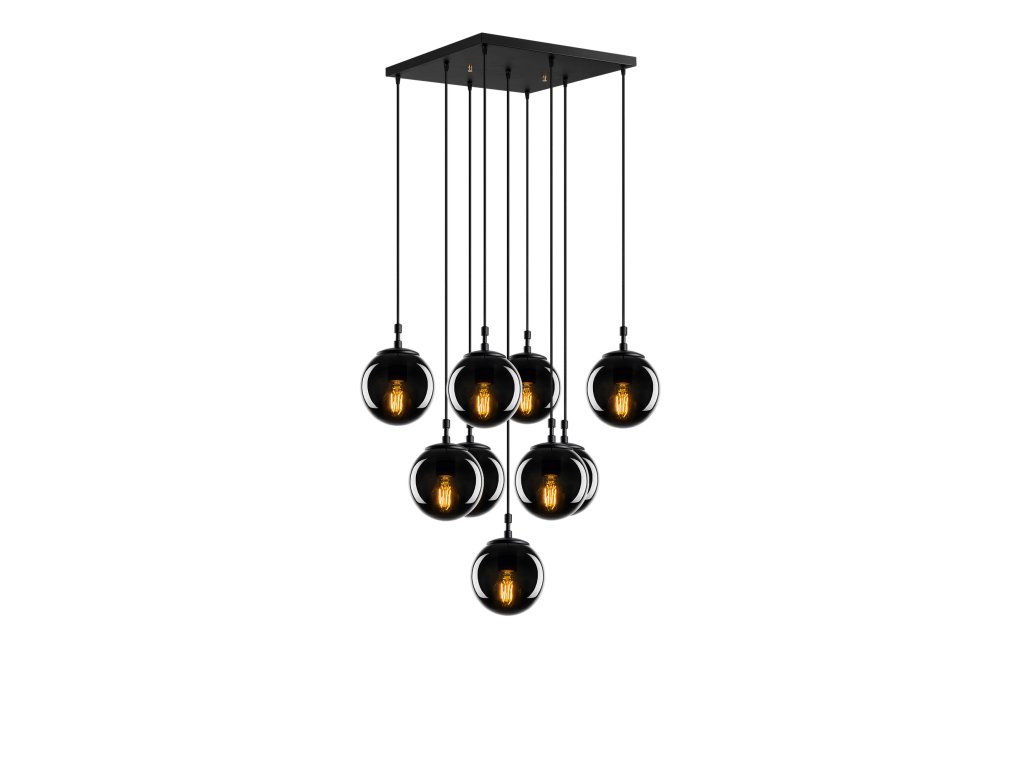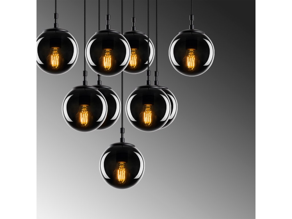 Výrazný luster so sklenenými tienidlami poskladanými do špice.