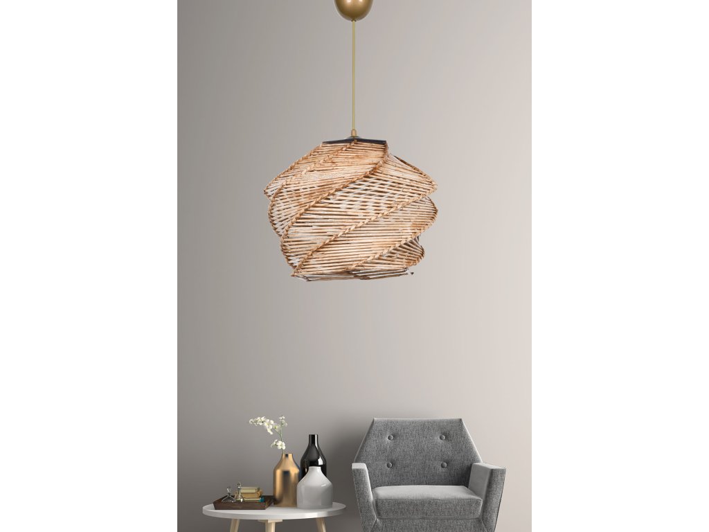 Prírodný jednoduchý luster s tienidlom z bambusového lyka (imitácia).