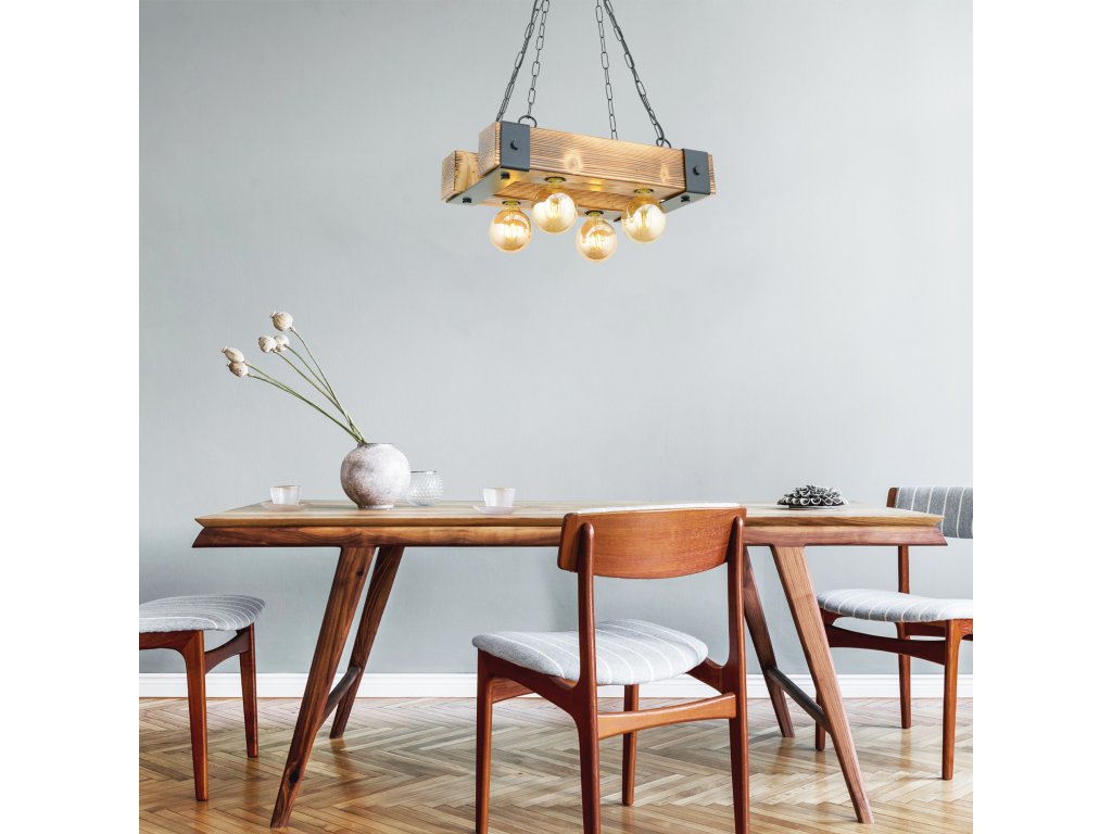 Luster TALU 4 sa svojim dizajnom i použitými materiálmi radí do vidieckeho štýlu a hodil by sa do krčmy - teda treba do jedálne.