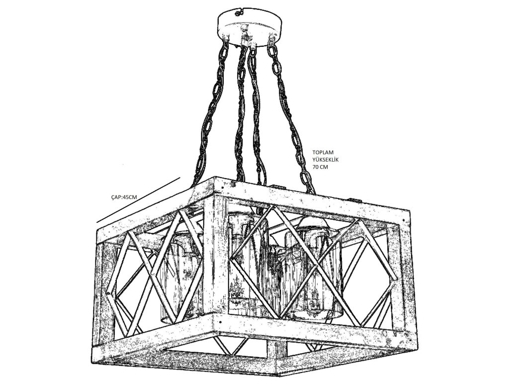 Luster je vyrobený z hrabového dreva v dekore orech, doplnený čiernymi kovovými pásikmi a reťazou.