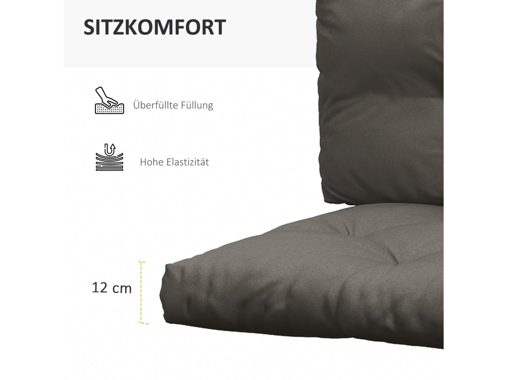 Súprava vankúšov na trávnik Outsunny je užitočným doplnkom pre každého, kto chce vylepšiť svoje vonkajšie posedenie. Nielenže poskytuje dodatočné pohodlie, ale dodáva aj nádych elegancie. Každý vankúš v tejto súprave je odborne vyrobený s hustou výplňou, ktorá zaručuje maximálne pohodlie a relaxáciu. Pohodlie a štýl vo vašej záhrade. S našimi vankúšmi na vonkajšie sedenie v okamihu osviežite svoj domov.