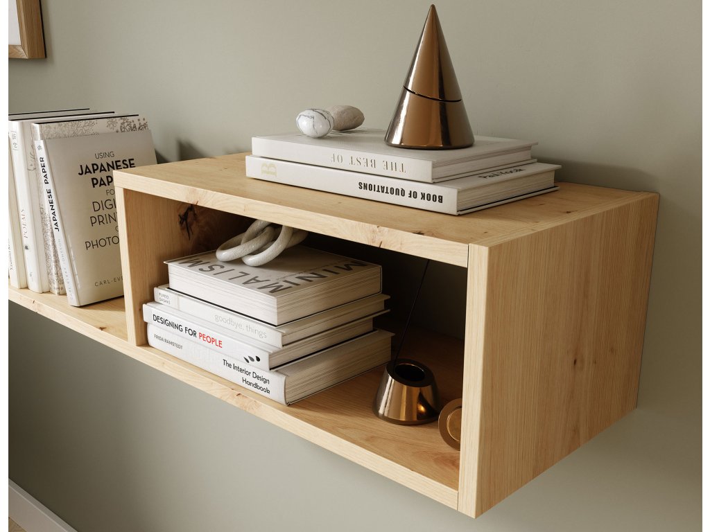 Dizajnová polica VELLIA so šírkou 80 cm a remeselným dubovým povrchom.