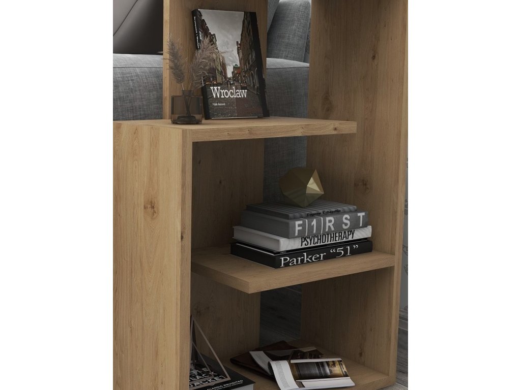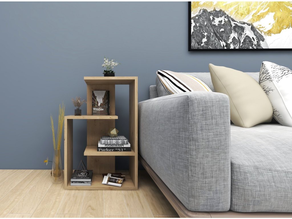 Stolík môžete použiť na dekorácie, knihy alebo lampičku. Skvele sa uplatní ako odkladací priestor vedľa sedacej súpravy alebo ako samostatne stojaci regál.