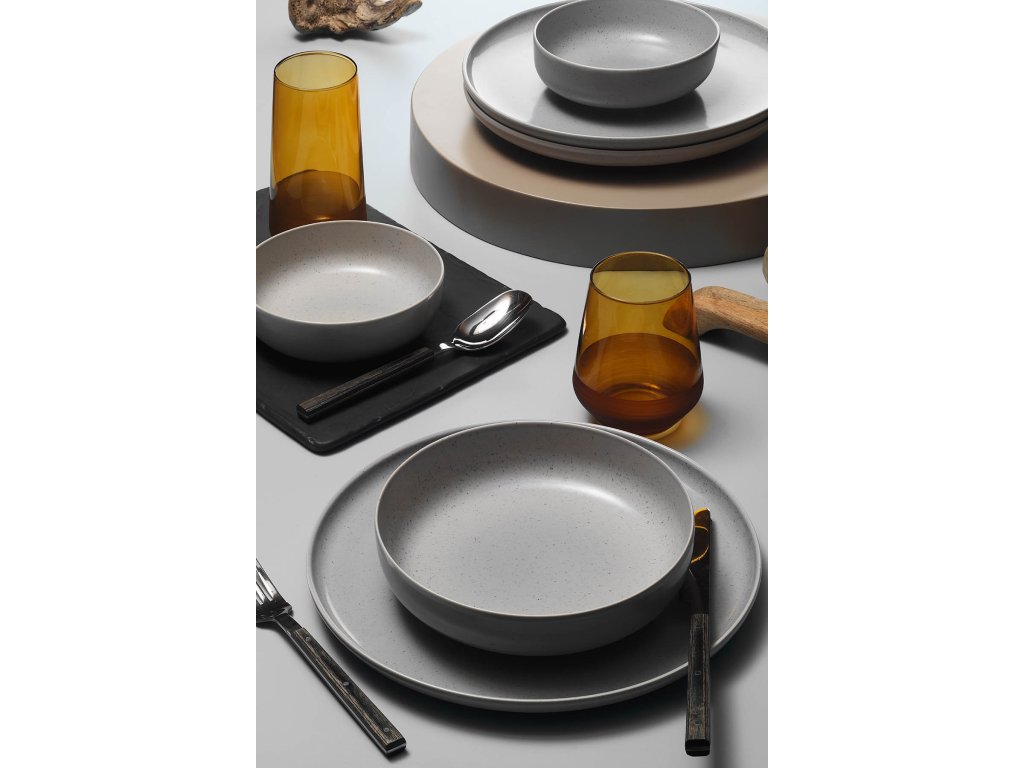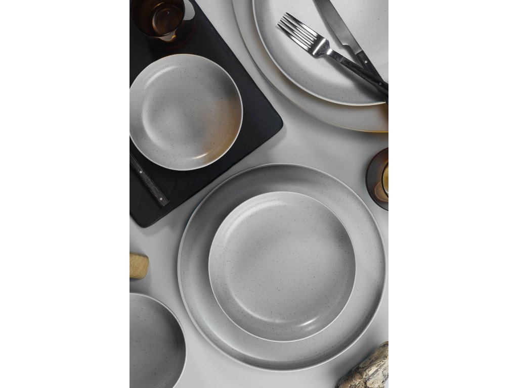 Porcelánová jedálenská súprava v sivej farbe.