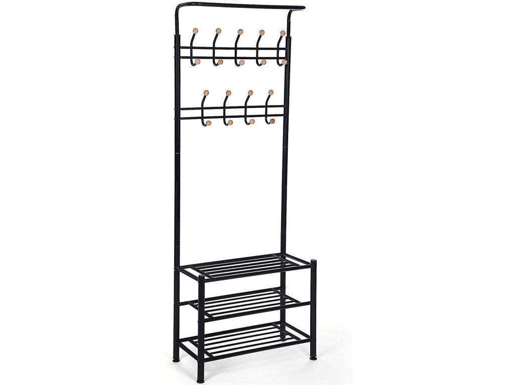Dostatočne priestranný stojan na oblečenie s 18 háčikmi (nosnosť každého háku: 5 kg) a trojstupňovým odkladacím stojanom, kam uložíte hocičo, ako je oblečenie, topánky a tašky.