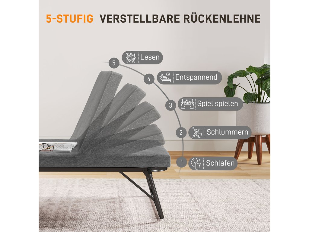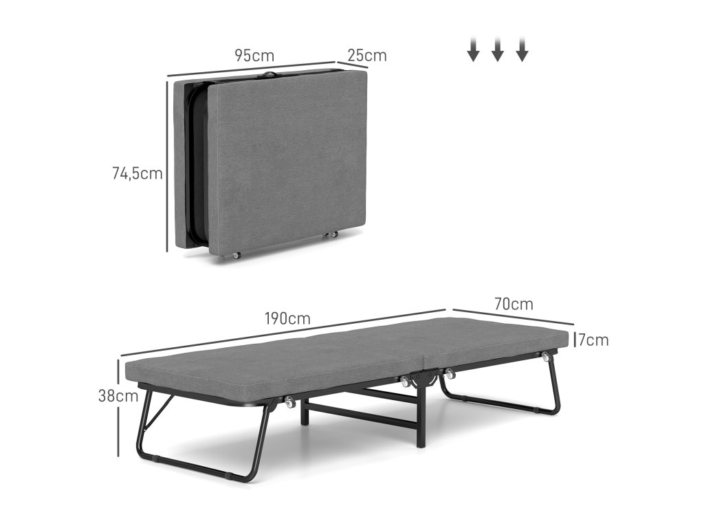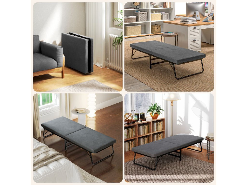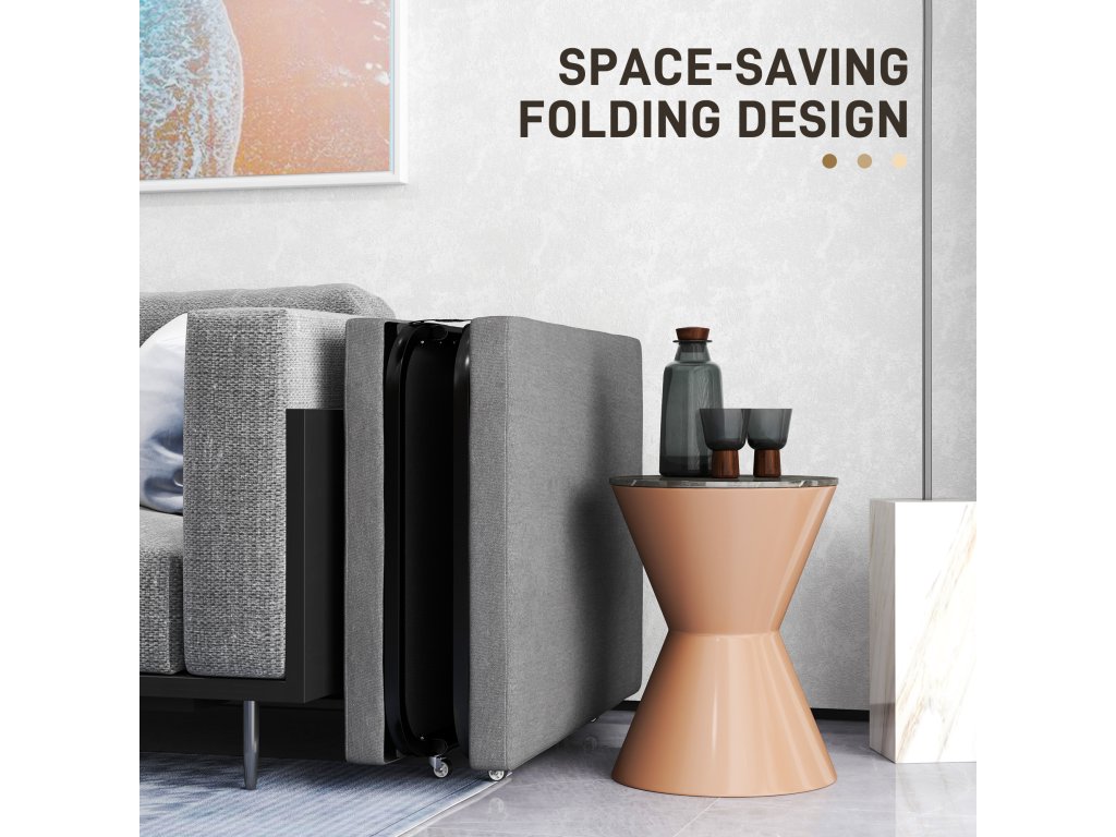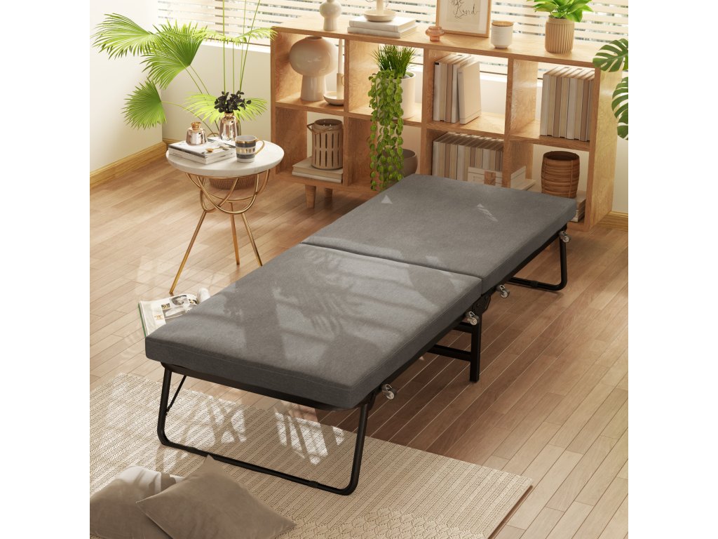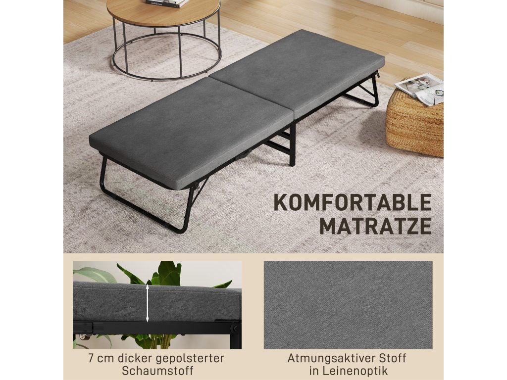 Zažite pohodlie rozkladacej postele HOMCOM, ktorá je vybavená 7 cm hrubým pohodlným matracom a príjemným látkovým poťahom. Túto flexibilnú posteľ pre hostí zložíte v priebehu chvíľky a má päťsmerne nastaviteľné čelo, ktoré je ideálne pre vaše chvíle odpočinku. Možno ju tiež ľahko premiestňovať na štyroch kolieskach bez toho, aby ste poškodili podlahu. Ideálne pre hostí alebo na zdriemnutie!