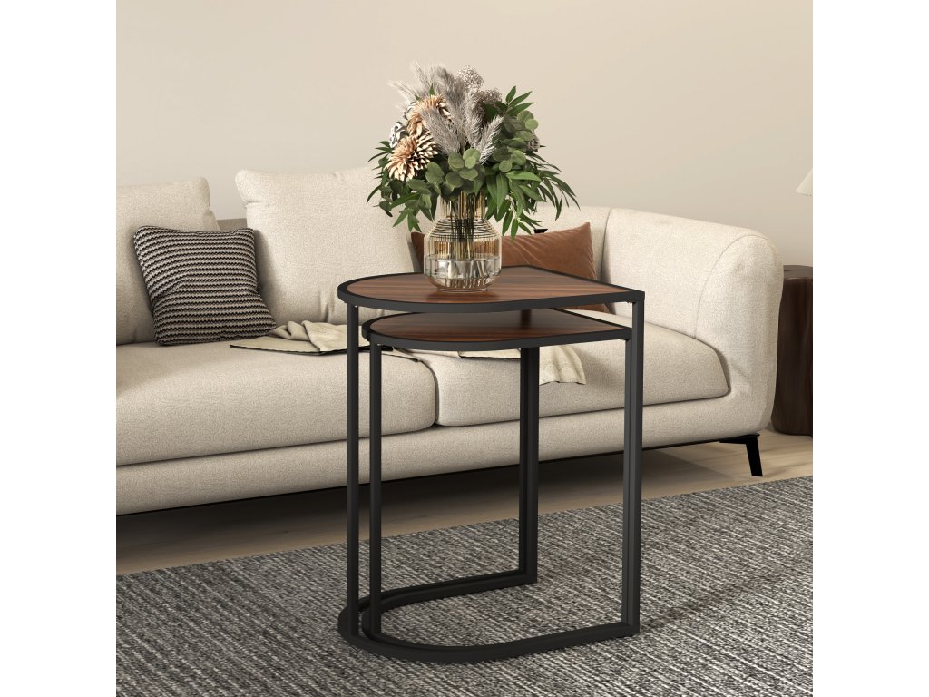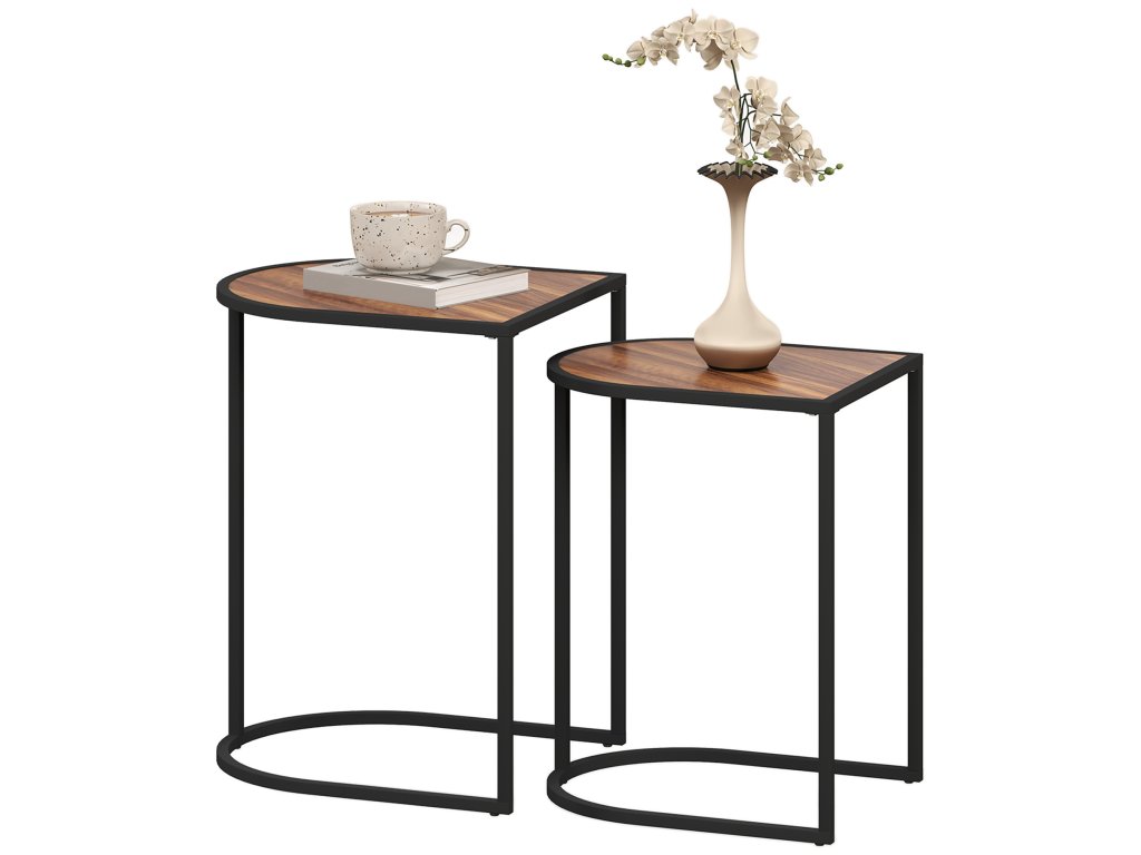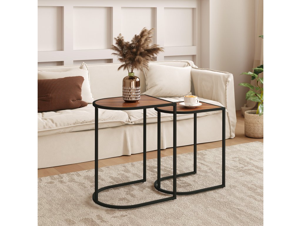 Sada 2 konferenčných stolíkov s oceľovým rámom hnedo-čiernej farby