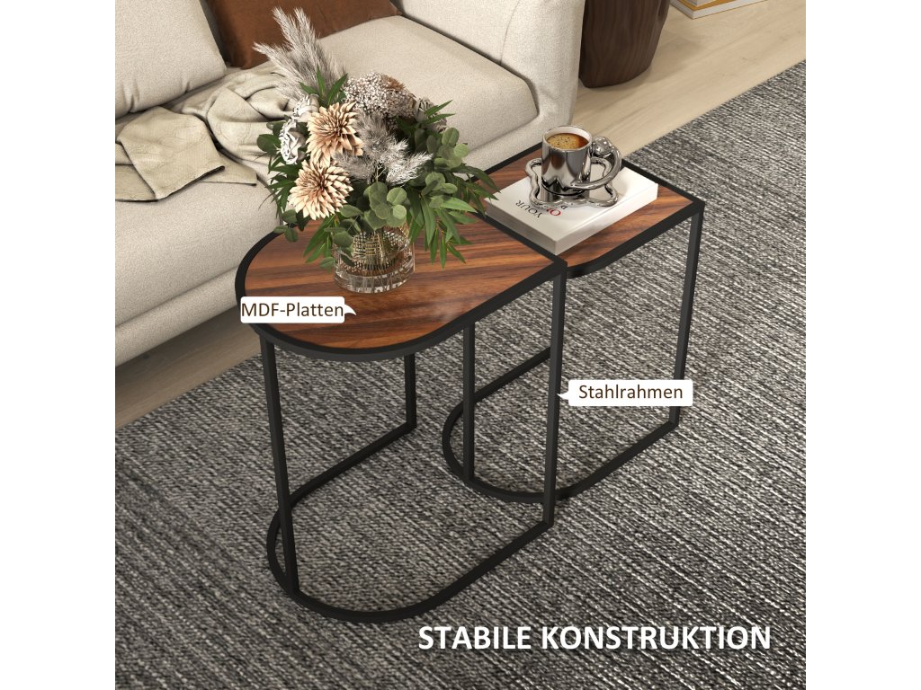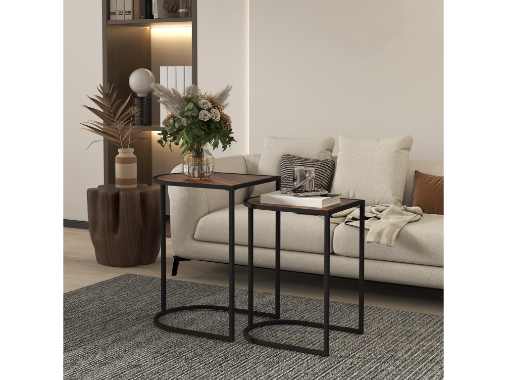 ✔ Pevné čierne oceľové nohy s práškovo lakovanými oceľovými rámami stolíkov poskytujú stabilitu
