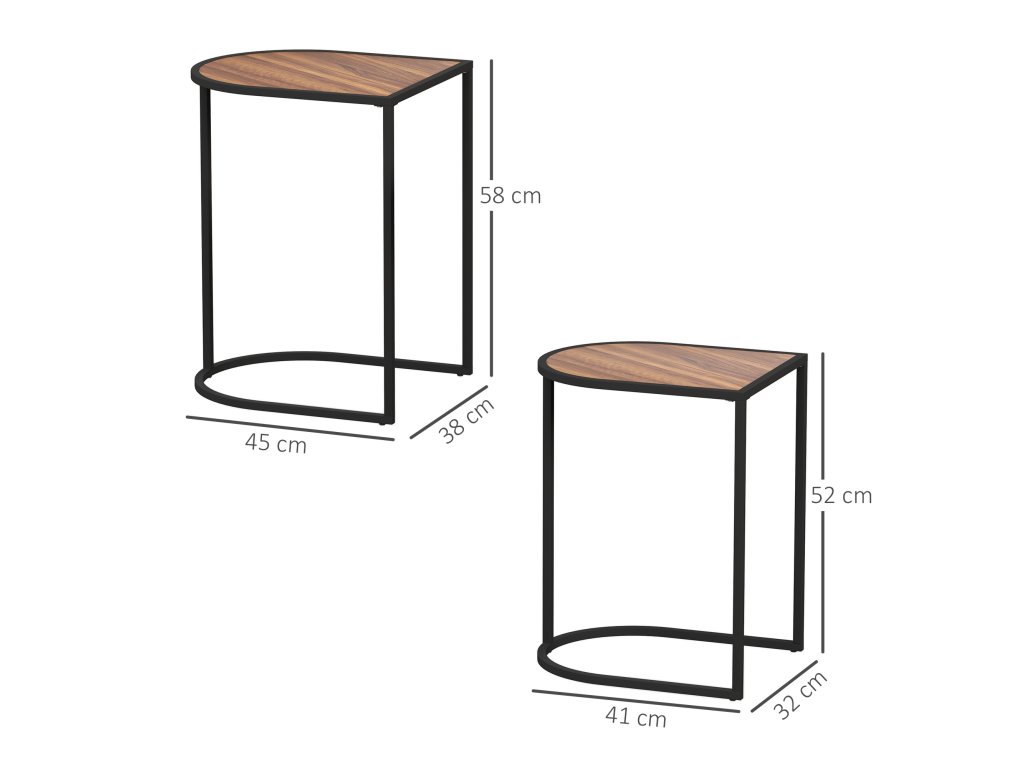 Vyskúšajte súpravu konferenčných stolíkov HOMCOM, ktorú možno ľahko zakomponovať do akéhokoľvek prostredia. Či už ich použijete ako vnorené konferenčné stolíky, alebo samostatne ako odkladacie stolíky a nočné stolíky, tieto stolíky sú všestranné. Vďaka štruktúrovaným šikmým doskám a robustným čiernym oceľovým nohám ponúkajú minimalistický kontrast a sú elegantným doplnkom vašej obývačky.