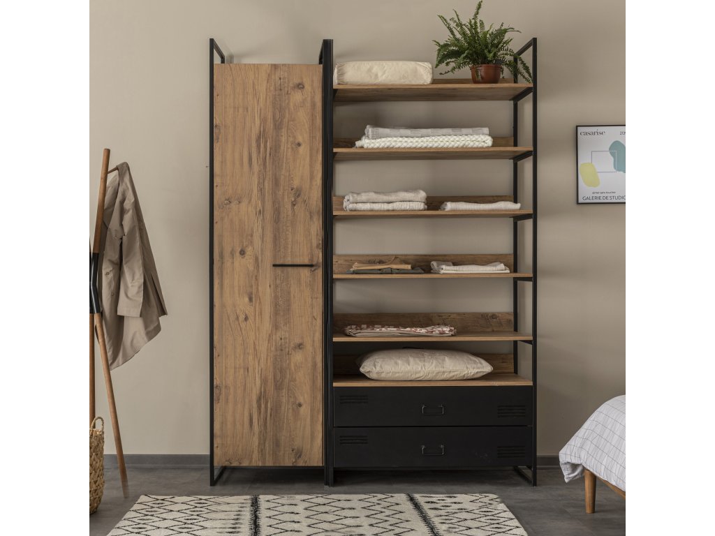 DYNAMIC šatníková skriňa sa skladá z úzkej skrinky a policovej skrine.