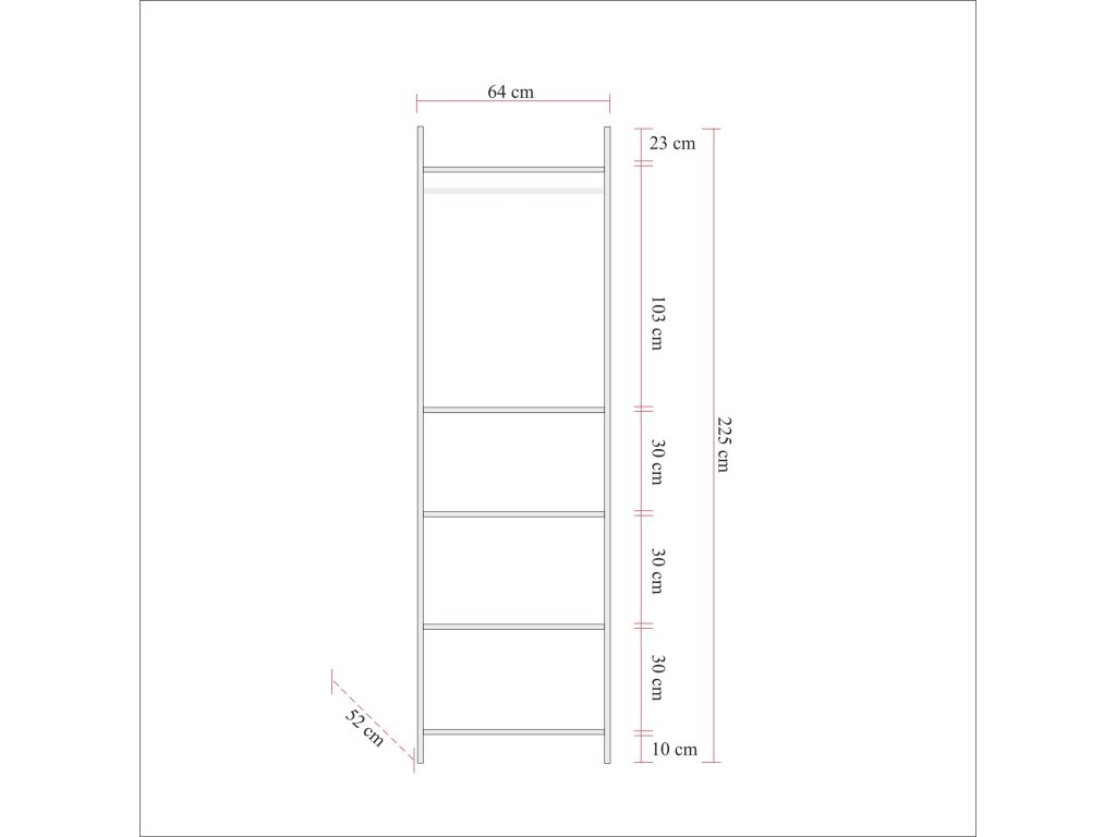 Prvá skriňa je úzka vysoká skrinka s poličkami a tyčou na kabáty alebo košele.