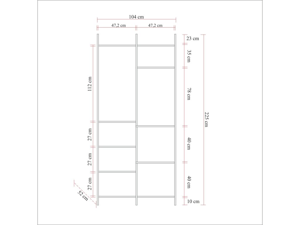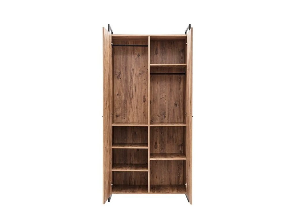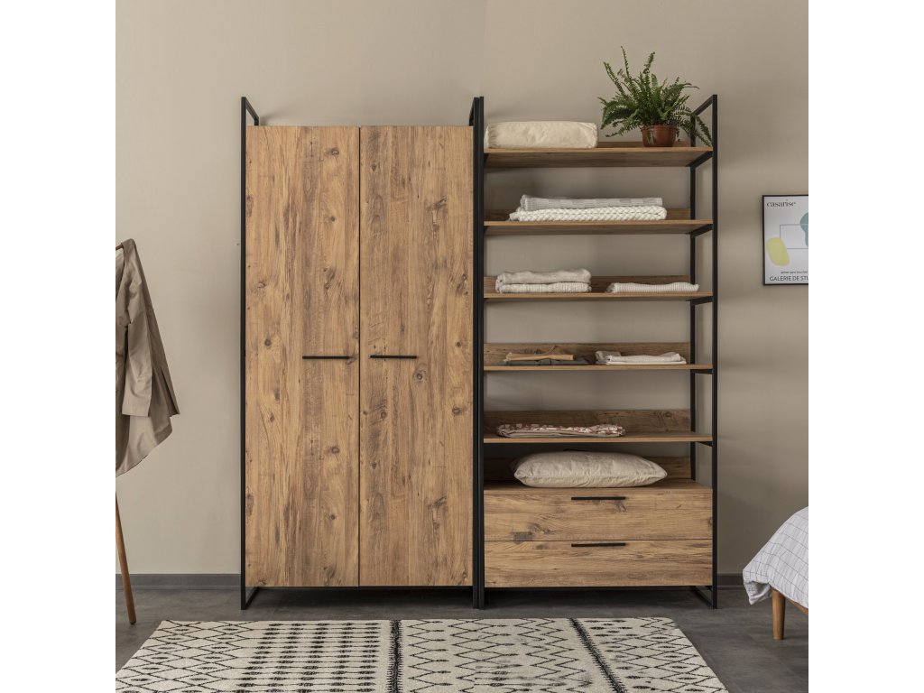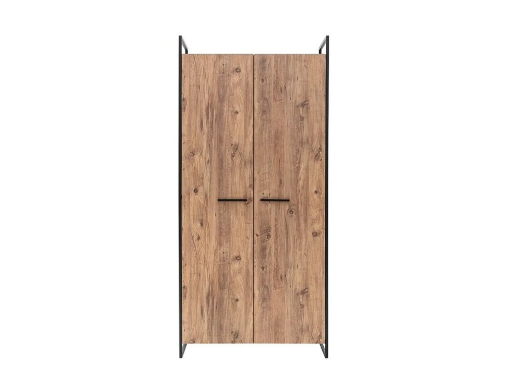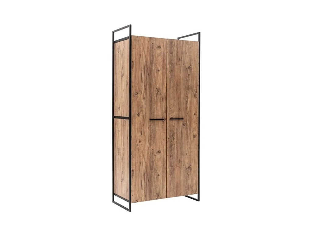 Dvojdielna priestranná šatníková skriňa s mnohými policami vo vnútri na uloženie odevov. V uzatvárateľnej časti skrine sú tyče, ktoré slúžia na zavesenie nohavíc alebo kabátov.