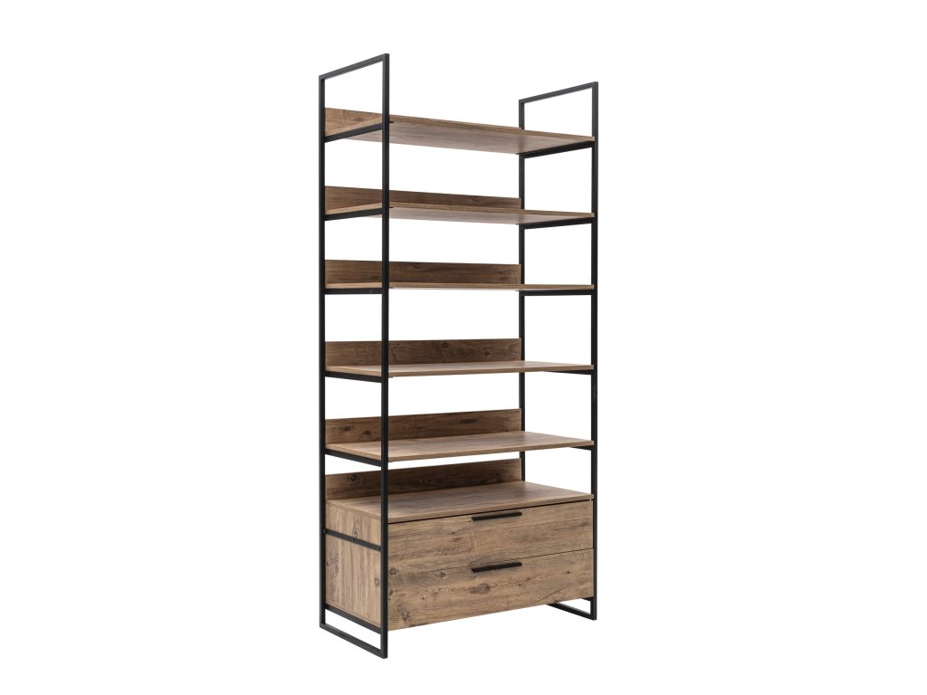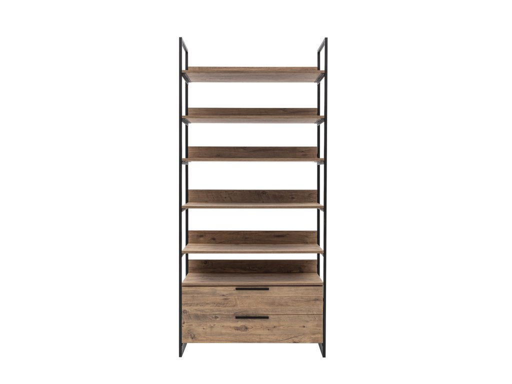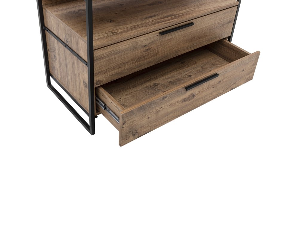 Druhá skriňa je jednoduchý policový regál s dvoma zásuvkami.
