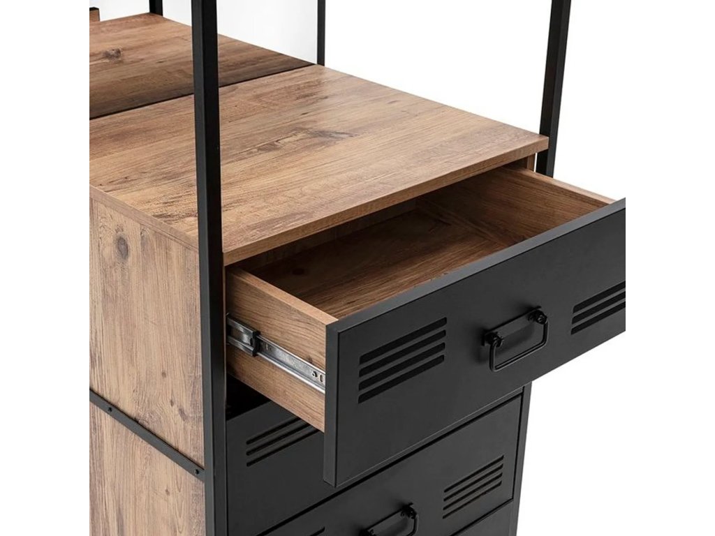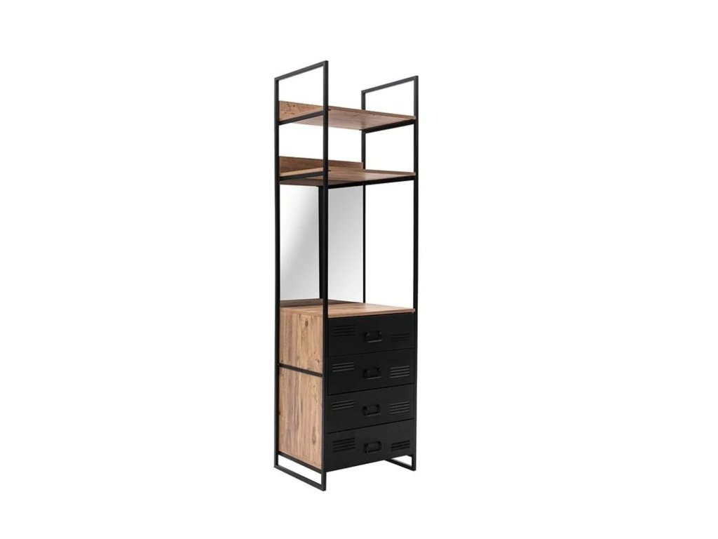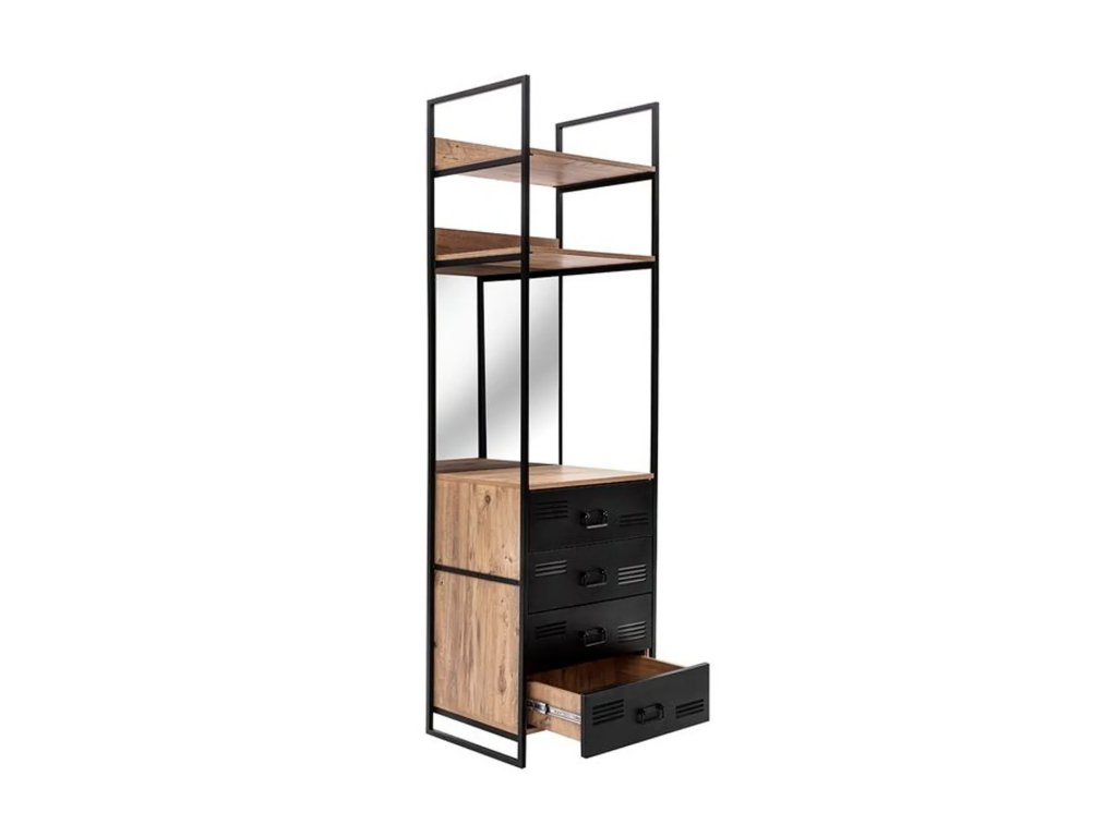 Druhá skriňa ku rovnako vysoká, a ponúka štyri zásuvky s kovovým čelom a praktické zrkadlo.