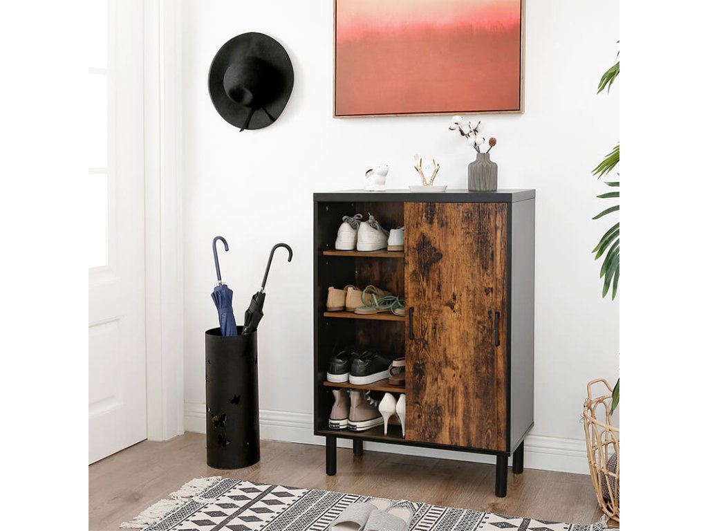 Vysoký botník na topánky s posuvnými dverami, ktorý v malej predsieni nezaberá ďalšie miesto. Elegantná kombinácia čiernej a hnedej farby očarí všetkých hostí.