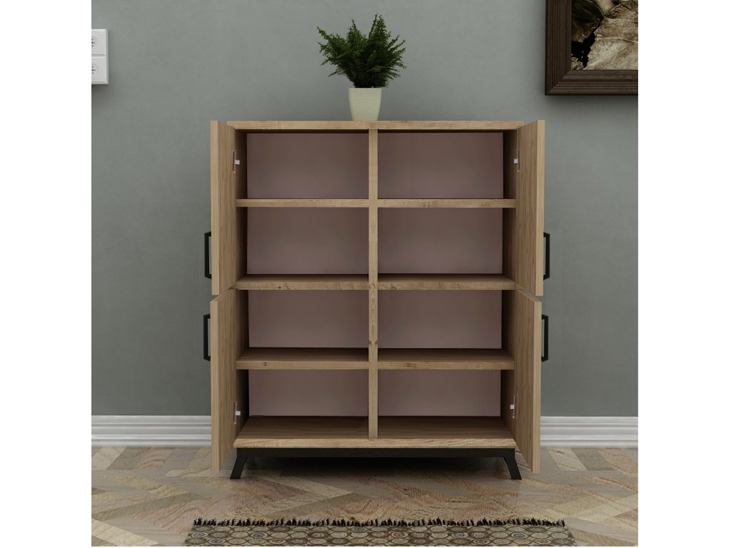 Vnútri nájdete štyri police rozdelené na polovice. Skrinku môžete využiť ako bielizník aj ako botník.