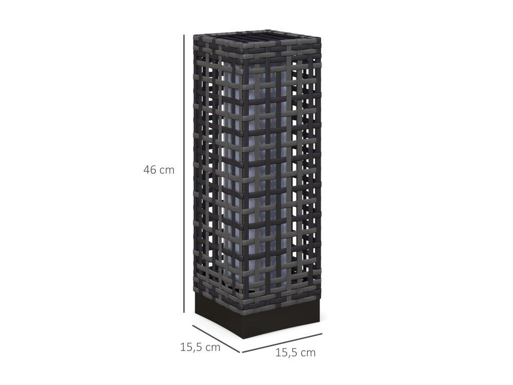 - Podrobnosti o výrobku: Svietidlo je vhodné na trvalé vonkajšie použitie: celkové rozmery: 15,5L x 15,5W x 46H cm. Solárny panel: 12W x 12D cm. Trieda vodotesnosti IP44.