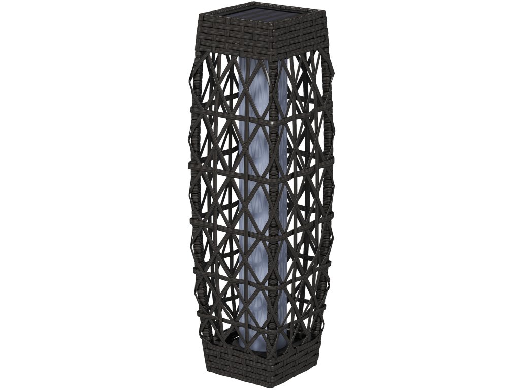 - Našu záhradnú stojaciu lampu chráni kovový rám s práškovou povrchovou úpravou, ktorý je obalený robustným polyratanom, ktorý je vysoko odolný voči UV žiareniu a poveternostným vplyvom. Svetlo má stupeň krytia IP44 pre odolnosť voči vode .