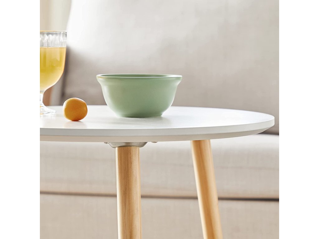 Oba konferenčné stolíky sú vyrobené z bielych okrúhlych dosiek a stabilných skrutkovacích nôh z borovicového dreva.