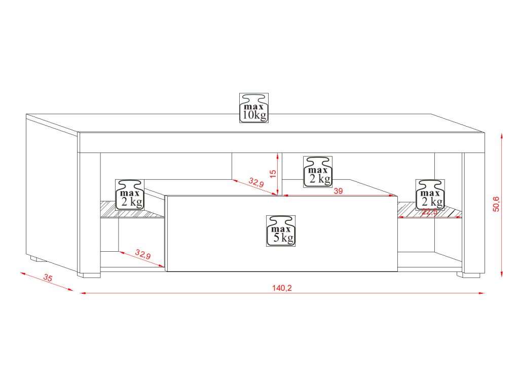 TV stolík Everest 140 cm je moderný kus nábytku vhodný do obývacej izby.