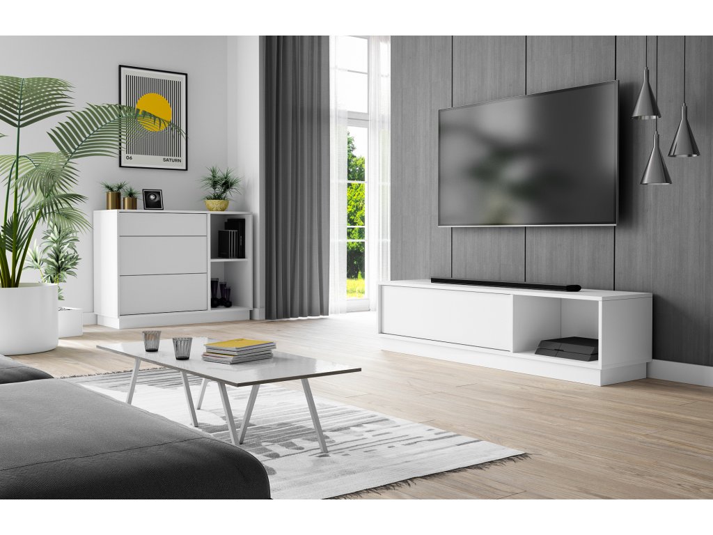 TV stolík zo série FRAME LOW v bielom vyhotovení.