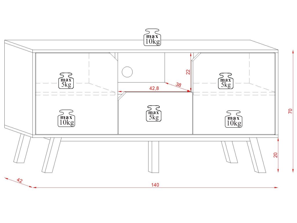 Stôl TOKIO bol navrhnutý tak, aby okrem zaujímavého vzhľadu plnil aj praktickú funkciu - má jeden otvorený výklenok na audiovizuálne zariadenia, výsuvnú zásuvku a dve uzavreté skrinky, do ktorých možno ľahko uložiť dokumenty alebo knihy.