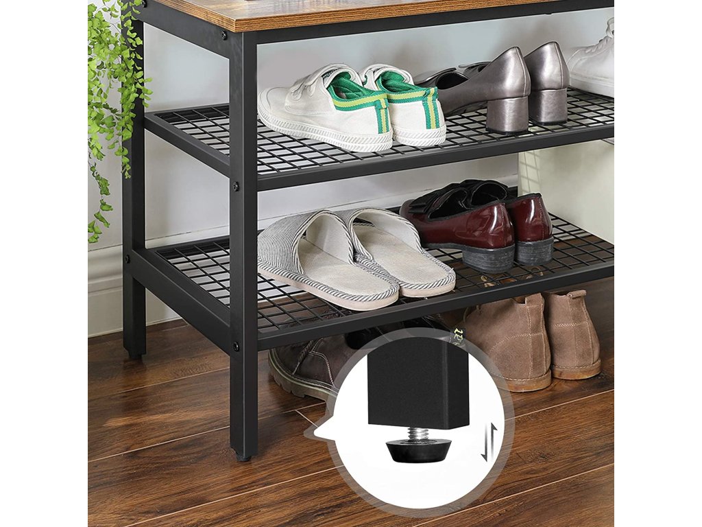 1 vešiak na topánky, 2 mriežky, 3 možnosti. Na dve robustné mriežkované police tohto botníka môžete uložiť rôzne topánky. Spodná mriežková polica je navyše 12,5 cm od zeme, takže pod ňou je miesto na lodičky, tenisky atď.