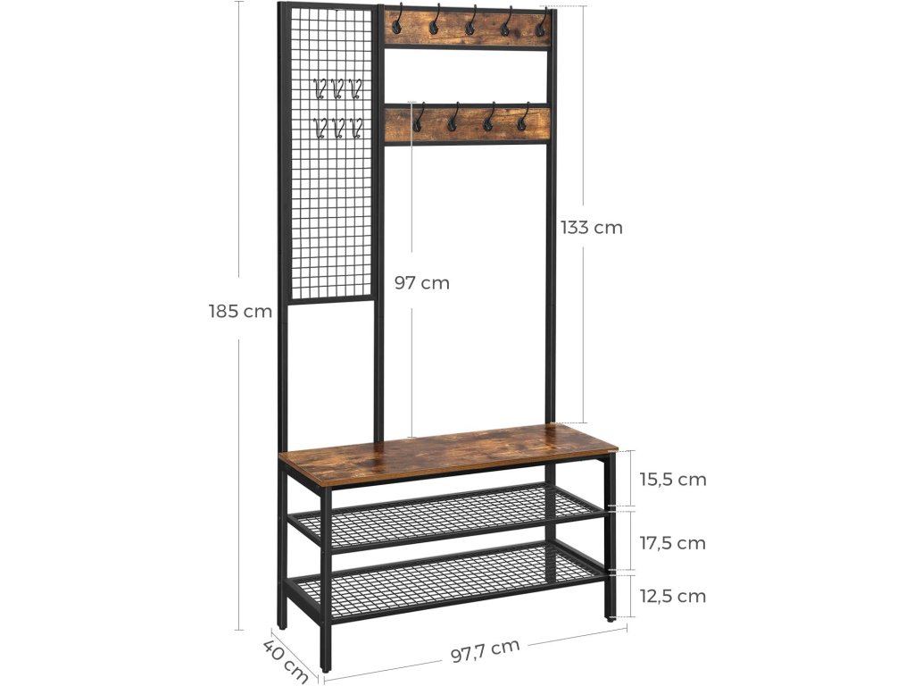 Vešiak do predsiene s botníkom 98 x 185 x 40 cm