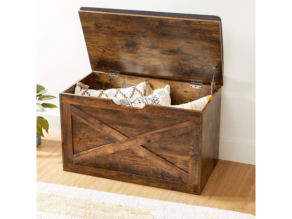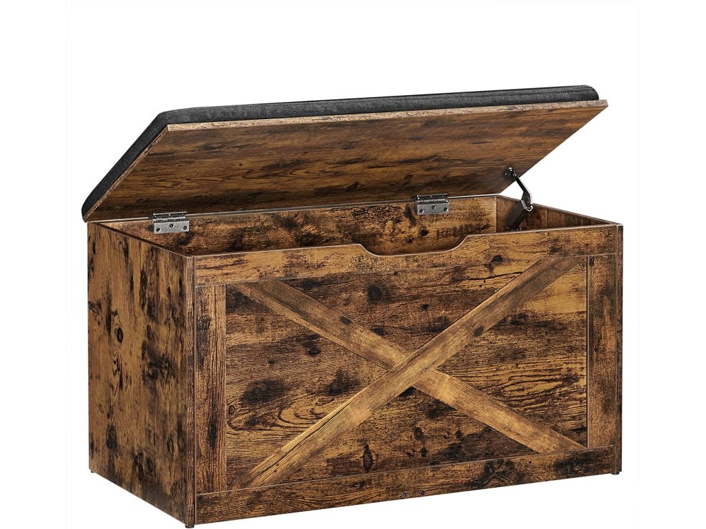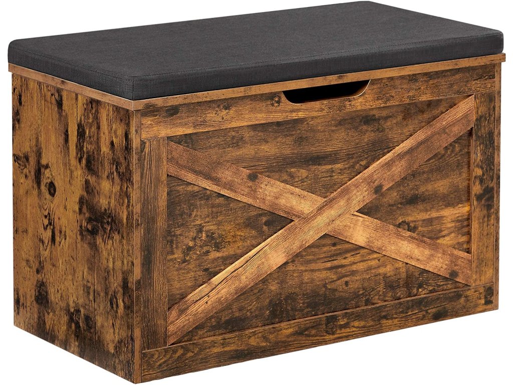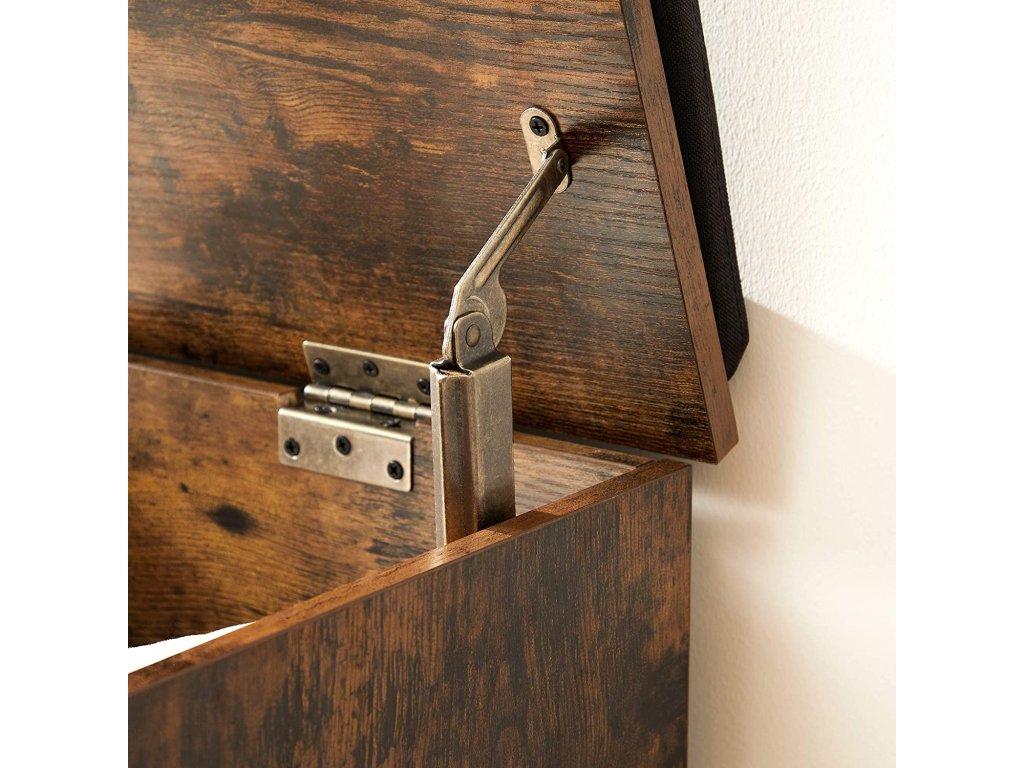 Je vyrobený z čierneho čalúneného sedadla a kvalitných MDF dosiek v rustikálnej hnedej farbe.