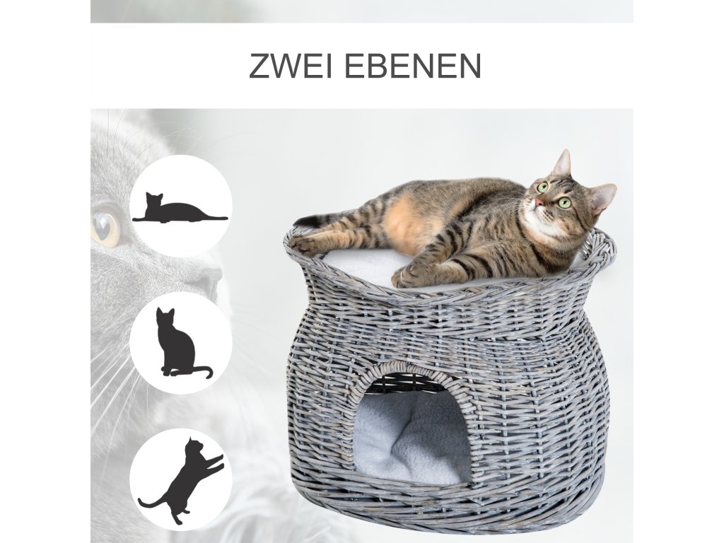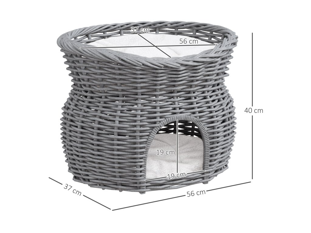 Vaše mačky budú milovať tento dvojposchodový prútený pelech pre mačky! Spodné poschodie ponúka vašej mačke priestrannú jaskyňu na relaxáciu.