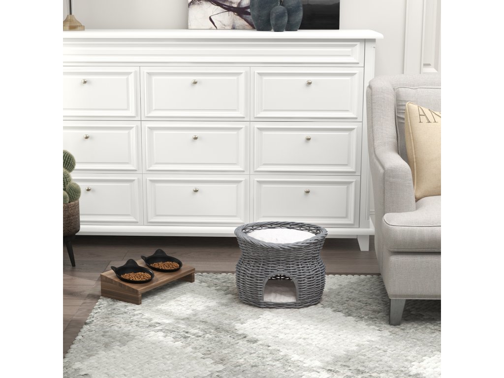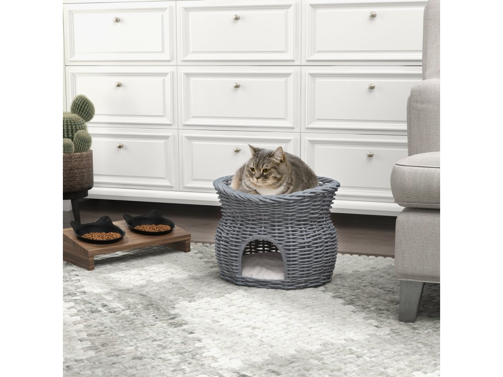 Náš ručne vyrobený košík pre mačky od PawHut je upletený z vŕby a zafarbený netoxickou šedou. Kôš pre mačky zaujme moderným dizajnom a kvalitným prúteným spracovaním. Obe miesta na spanie sú vybavené mäkkými vankúšmi. Vankúše sú odnímateľné a umývateľné pre ľahké čistenie.
