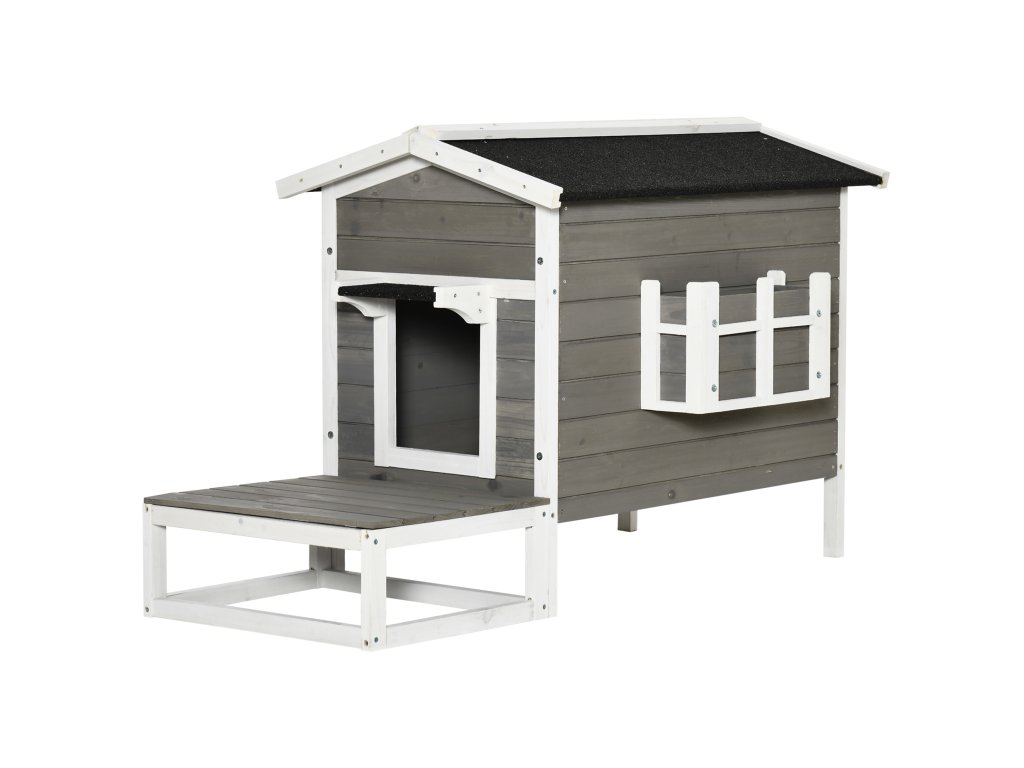 Vonkajší drevený domček pre mačky 115 x 67 x 75 cm sivý biely