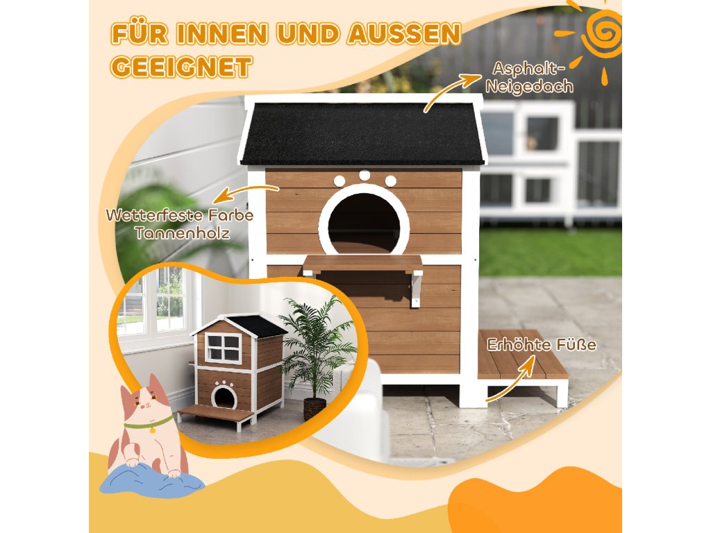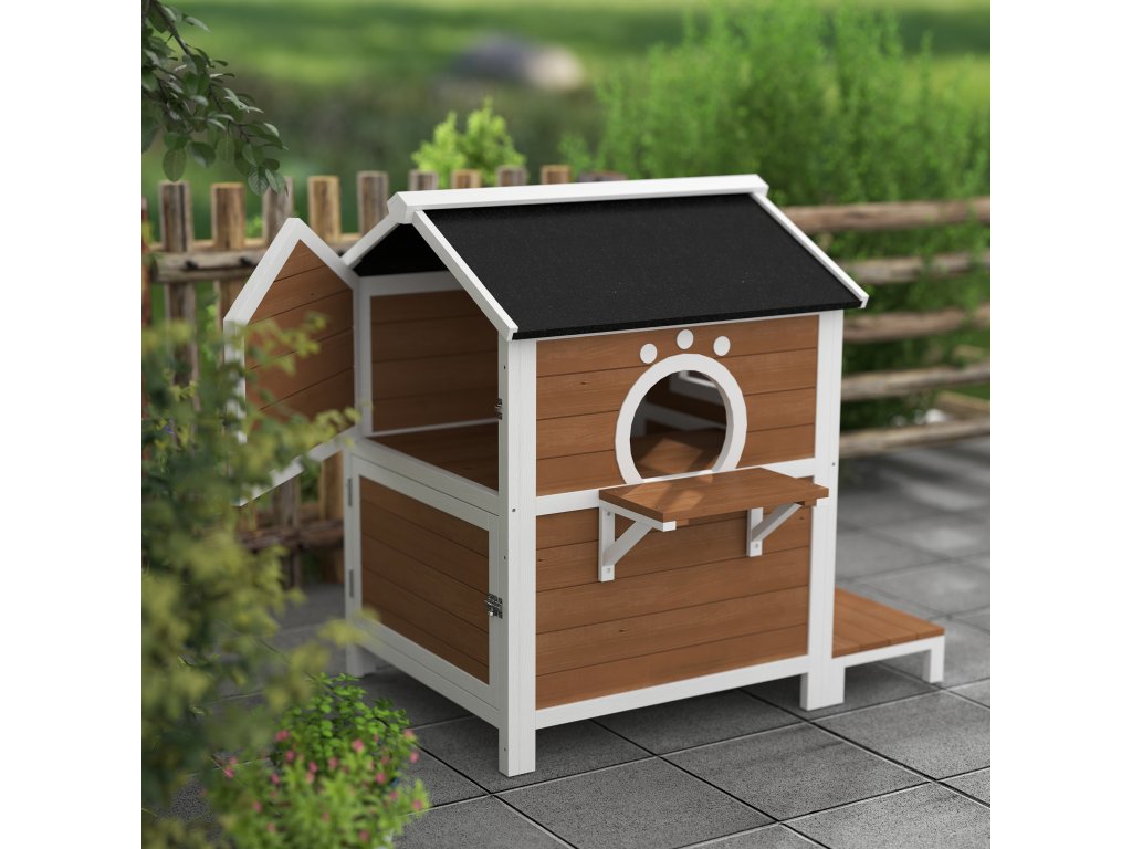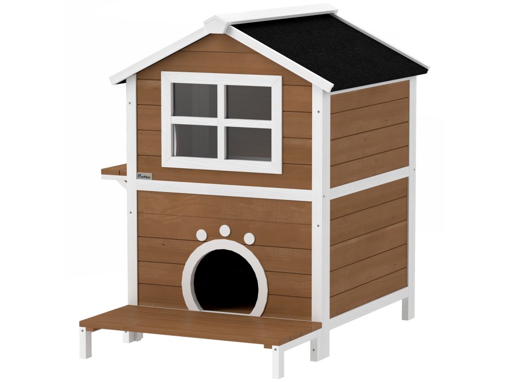 - Vonkajší mačací domček je vybavený asfaltovou strechou, ktorá chráni pred dažďom, vetrom a intenzívnym slnečným žiarením. Ideálne pre celoročné vonkajšie použitie
