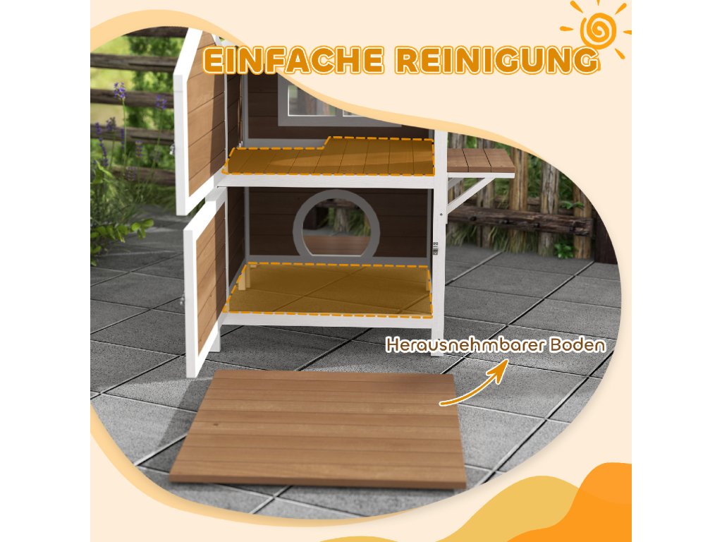 - Vďaka odnímateľnej podlahe sa vonkajší domček pre mačky rýchlo a ľahko čistí